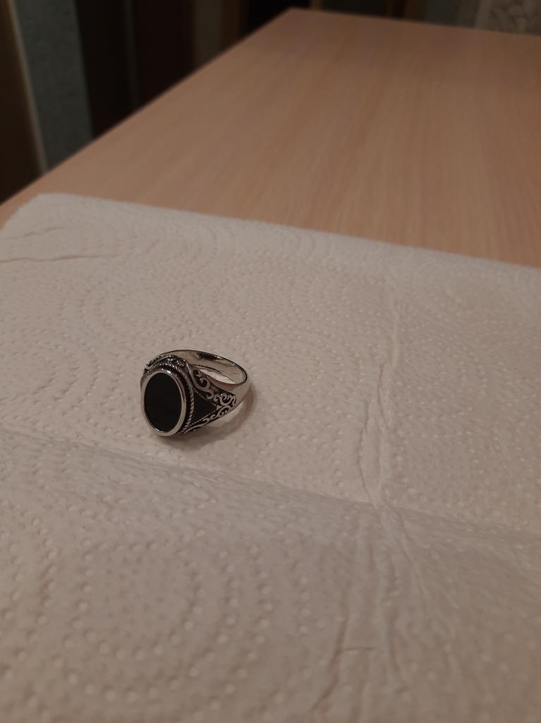 Мужской перстень, на редкость элегантный, с камнем чёрный оникс, с эмалью и посеребрянный, от серебра не отличишь