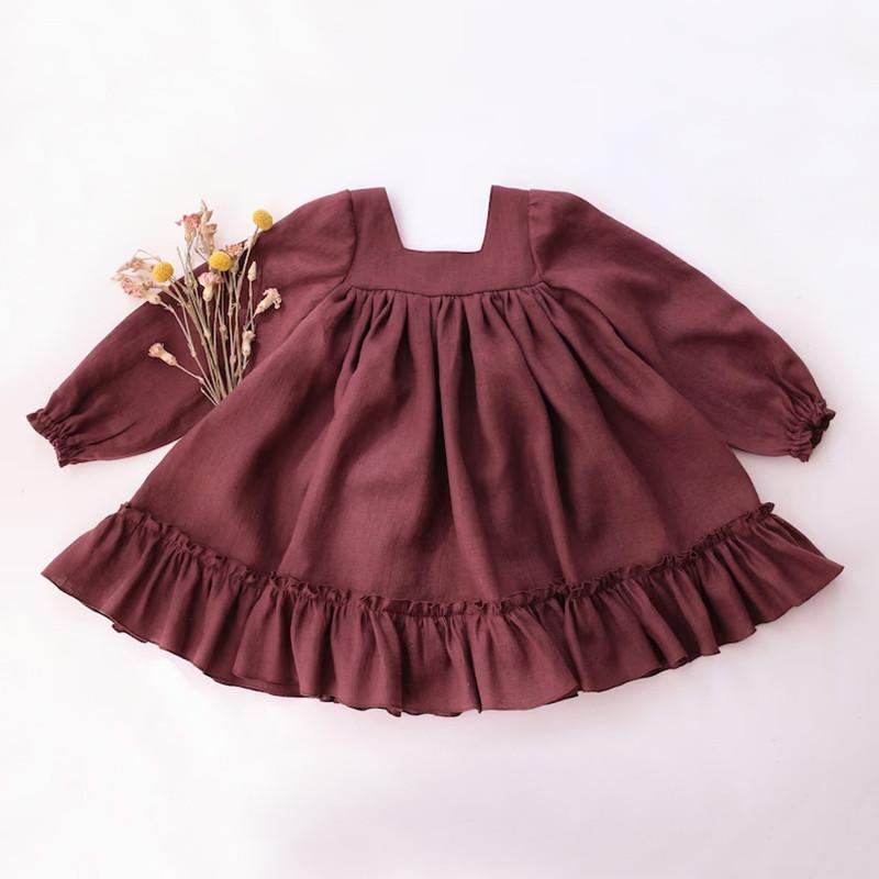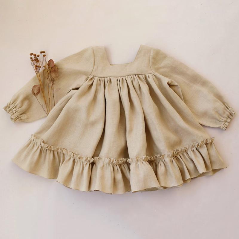 Одежда принцессы для маленьких девочек, весеннее льняное хлопковое платье с длинными рукавами для девочек, детские платья