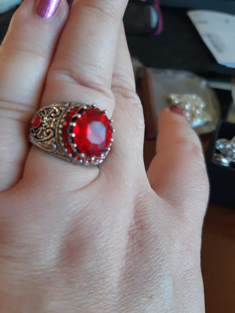 Кольцо прикольное, но качество изготовления это что-то. Камень просто приклеен, и, причем криво. Сама металлическая часть мне понравилась, а вот камень выглядит очень дешево по сравнению с рекламной фотографией. Впрочем при такой стоимости вопросы наверное не уместны. Посмотрим, что туда можно приклеить более приличное. Размер 8 соответствует 18 размеру в России. У меня 18,5, и кольцо чуть маловато. К сожалению, у производителя нет 8,5, сразу 9.