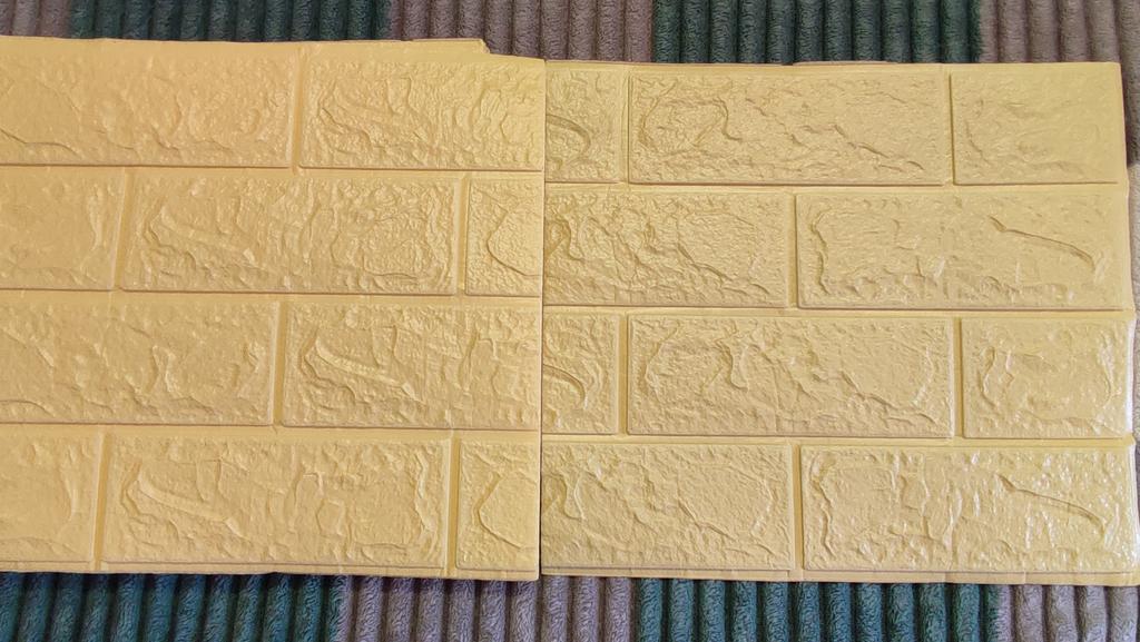 Заказывала на пробу одну упаковку, посмотреть качество и цвет. Надо придумать, куда именно буду клеить и рассчитать количество. Кирпичики хорошие, цвет в принципе совпадает с тем, что здесь был изображен. Размер каждой панельки небольшой, удобно будет клеить (я чуток помучалась с подобными с WB размером 38х70 см.)). Что немаловажно: рисунок подбирать не придётся, нормально стыки подходят. Поверхность матовая (в отличии от тех же, что уже у меня наклеены, глянцевых).