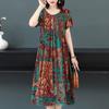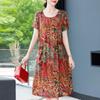 Женское летнее модное свободное хлопковое шелковое платье большого размера с короткими рукавами и цветочным принтом, темпераментные платья трапециевидной формы
