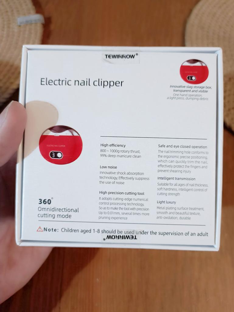 Машинка для стрижки ногтей от #TEWIRROW 👌 - маленький, но полезный помощник по уходу за собой🙂 И это снова хваст, устройство оказалось вполне функциональным, прекрасно справляется со своими задачами👍Лёгкий, компактный приборчик, который умещается на ладони, работает практически, бесшумно, имеет встроенный аккумулятор и, соответственно, не требует батареек😉 В качестве режущего инструмента здесь используется винтовой нож, который вращается в специальной прорези спереди, просто подносим туда нужный палец, и поворачивая машинку со стороны в сторону требуемое количество раз, добиваемся нужной длины и формы ногтя. Это очень просто, не требуется никаких специальных навыков, у меня, например, всё прекрасно получилось с первого раза👌И главное, абсолютно безопасно, даже по сравнению с привычными ножницами или книпсером, тем более, край ногтевой пластины сразу получается идеально гладким, не нужно никаких дополнительных действий. Имеется три скорости, которые ступенчато переключаются кнопкой включения, а цифровой дисплей рядом с ней покажет, какая именно включена. Он же служит для индикации уровня зарядки, только там вместо цифр будут черточки🙂 Ультрафиолетовая подсветка режущих кромок служит для дезинфекции, вы можете спокойно пользоваться одним устройством, например, в семье, и не бояться подхватить какой нибудь грибок. С другой стороны имеется контейнер для срезанных ногтей, который закрывается прозрачной поворотной крышкой. Для удобной очистки в комплекте имеется специальная щеточка. Приходит машинка в Варшаву, Польша, за две недели, забрал посылку в почтовом отделении. Упаковка - прочная картонная коробка, в комплекте, кроме вышеупомянутой щеточки имеется прозрачная защитная крышка, инструкция по эксплуатации и короткий кабель USB type-C для зарядки. Эта покупка оставила только самые положительные впечатления у меня, а также понравилась всем домашним, с удовольствием будем ей пользоваться, смело рекомендую к приобретению!