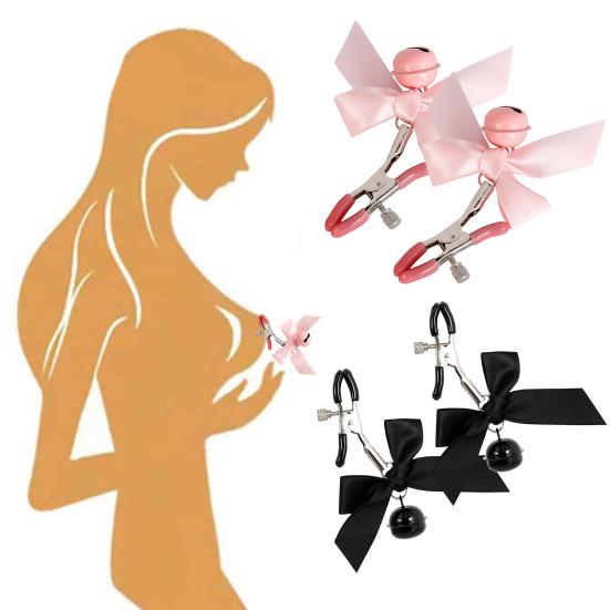 1 пара зажимов для сосков, простой в использовании, флирт, забавный, интересный, бант, колокольчик, черный, розовый, стимулятор для женщин