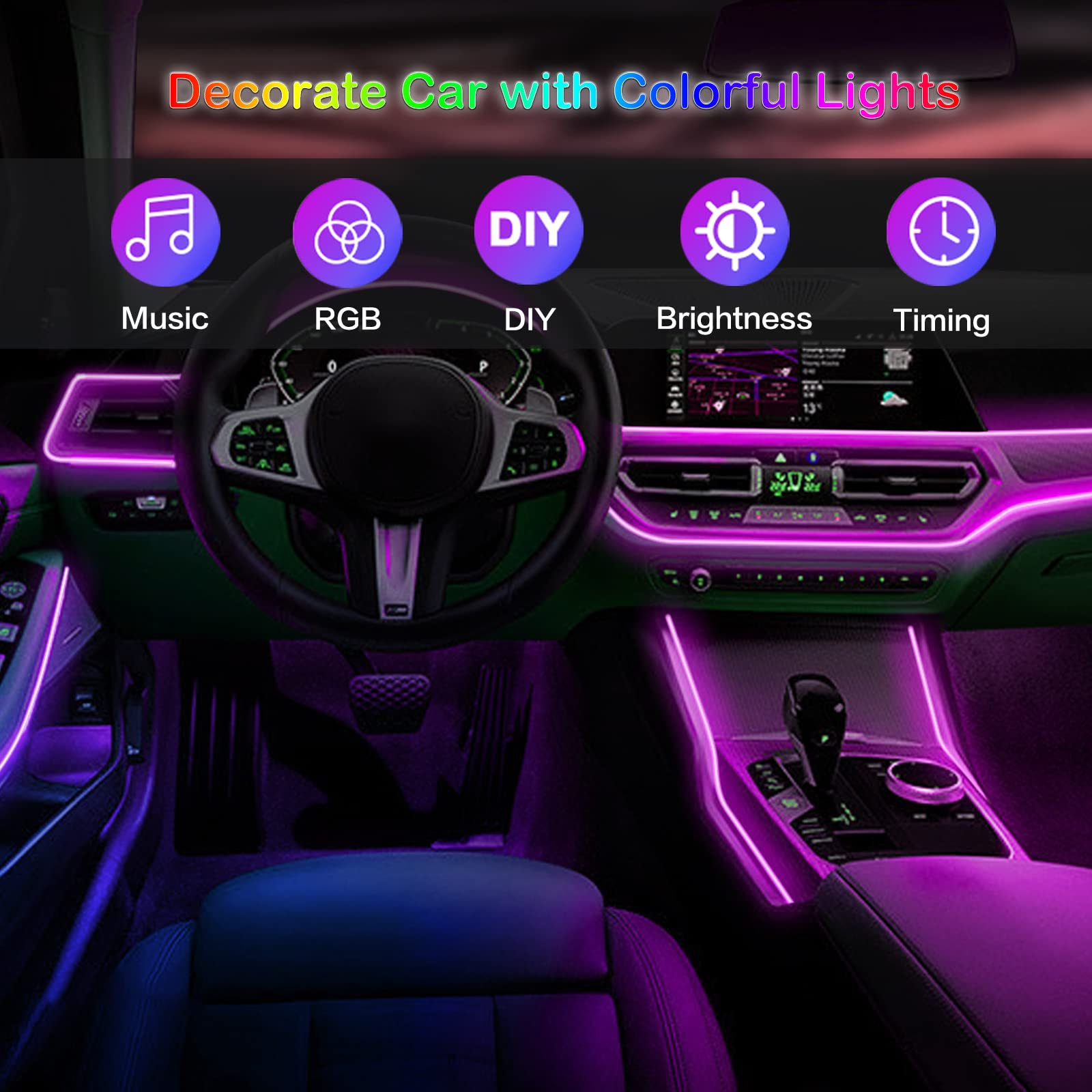1.【App Control and Sound Activation Effect】: Эта светодиодная лента интерьера автомобиля может управлять 16 световыми цветами и 29 изменениями режима через APP беспроводной Bluetooth, этот свет салона автомобиля имеет звуковой датчик, свет может быть синхронизирован с музыкой, дает вам другое чувство ритма.