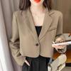 Корейские укороченные блейзеры женские однотонные простые верхняя одежда на одной пуговице универсальная офисная куртка с длинными рукавами для подростков