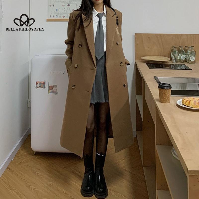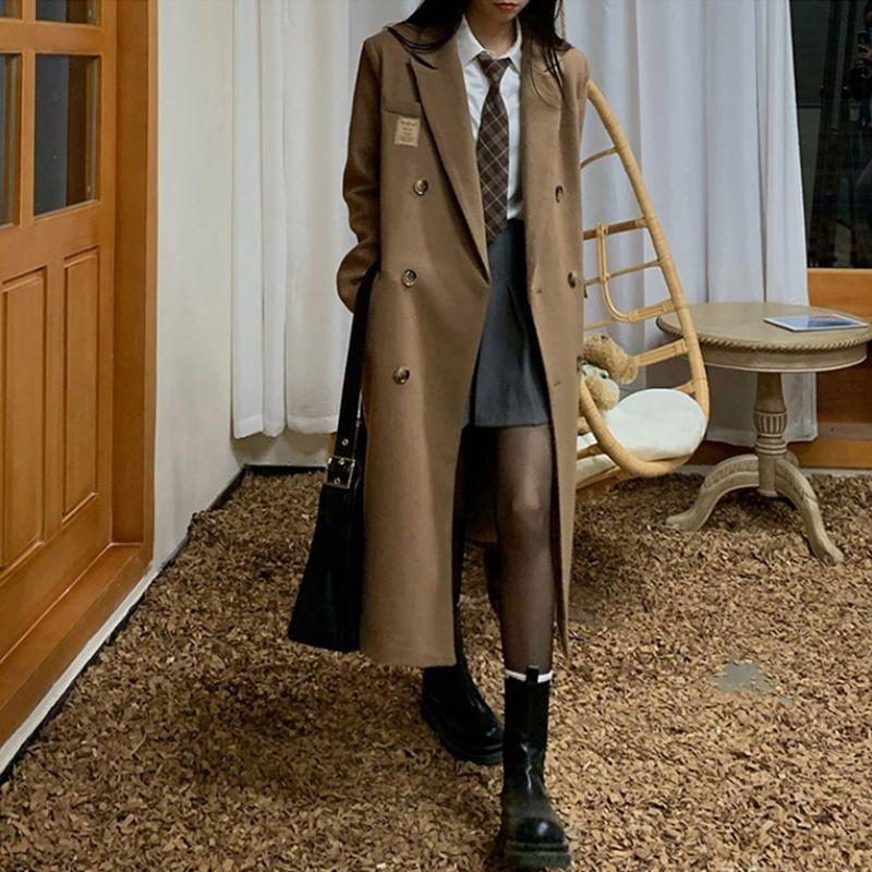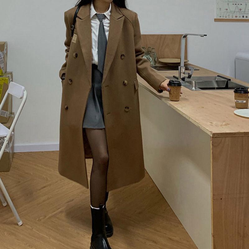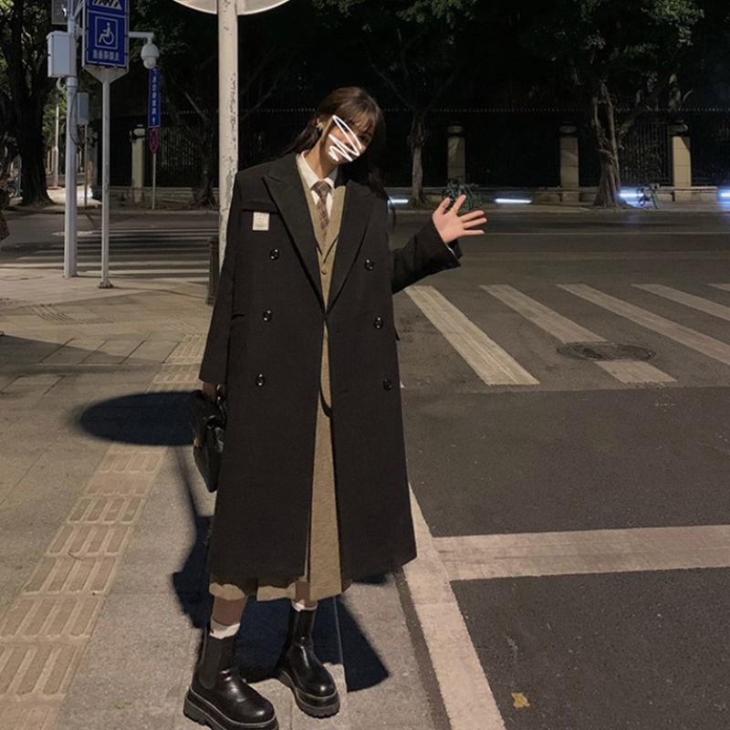 Модное повседневное шерстяное пальто женское свободное длинное толстое черное зимнее шерстяное пальто длиной до колена весенне-осенний плащ