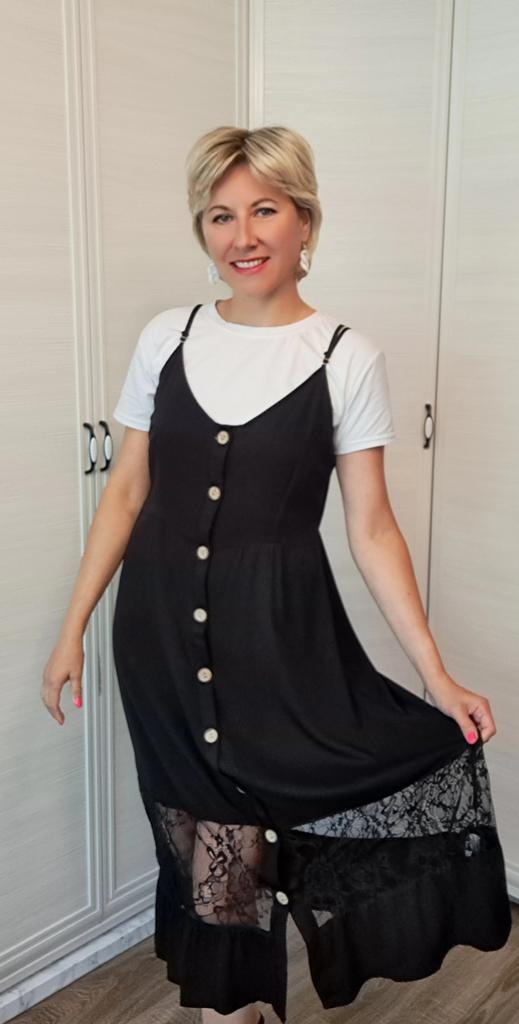 Платье-сарафан со вставкой из кружев👌💯 💜 Фотообзор+видео 🎥 💚 Жду вас на моем Telegram канале 🔎 ЕвгенияДжум 💕💕💕 где всегда свежие промокоды, обзоры на купленные товары и общение👍 Присоединяйтесь💐🌷🥰 ❤ Качество отличное, кружево красивое, пошив идеальный, пуговицы под дерево, материал вискоза 👌 💙 На мне размер XL Мои параметры ⬇️⬇️⬇️ 💢Рост 173 см 💢Ширина плеч 40 см 💢Объем груди 95 см 💢Объем талии 80 см 💢Объем бёдер 100 см Универсальная вещь👍 можно одевать отдельно или в комплекте с футболкой, лямочки регулируются 👌 ❤ Удачи на просторах Joom💃💃💃