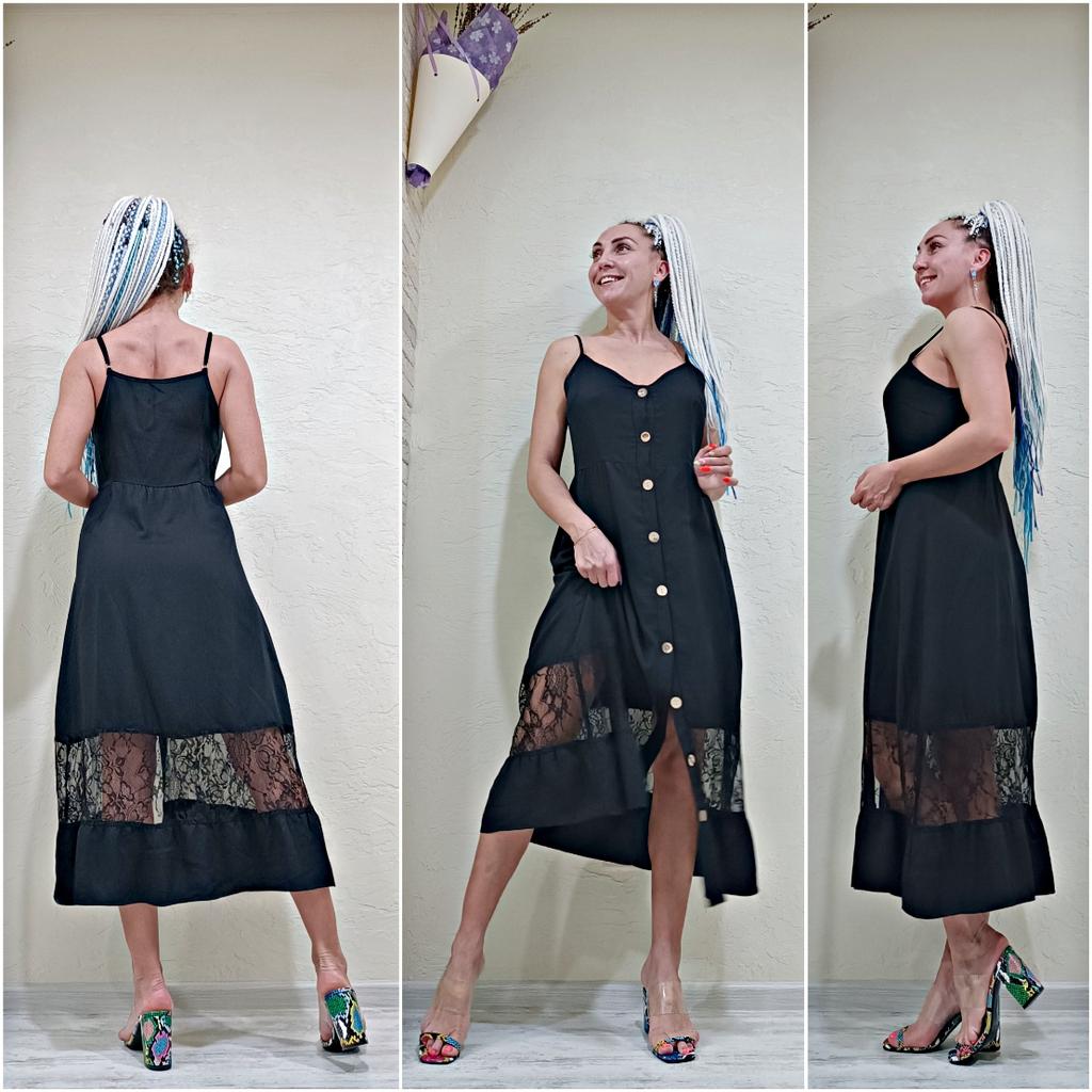 Женское летнее платье без рукавов с черными кружевными вставками, однотонное свободное шикарное платье