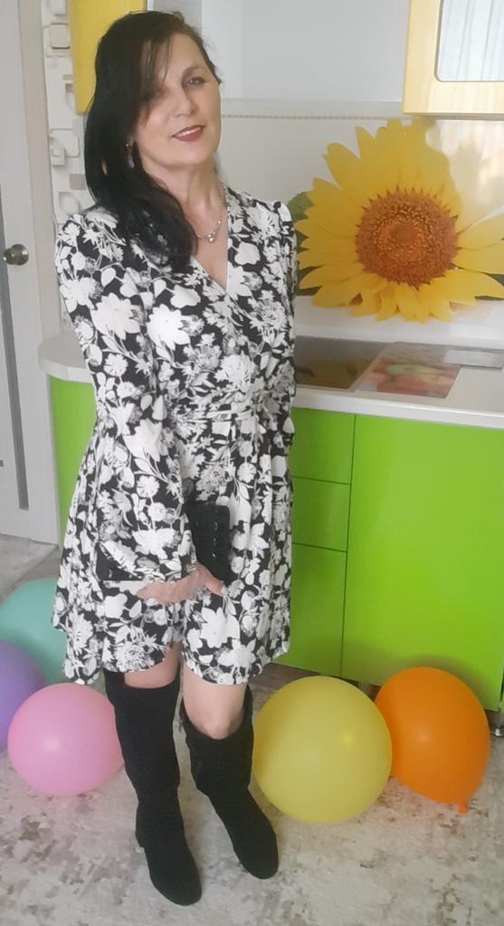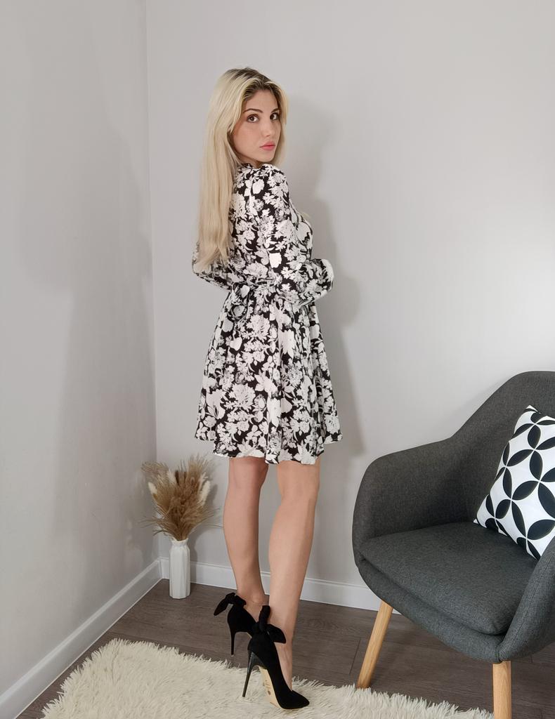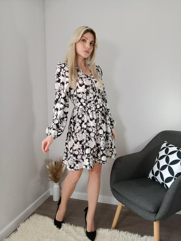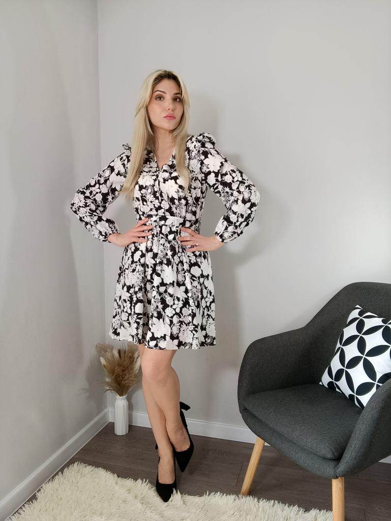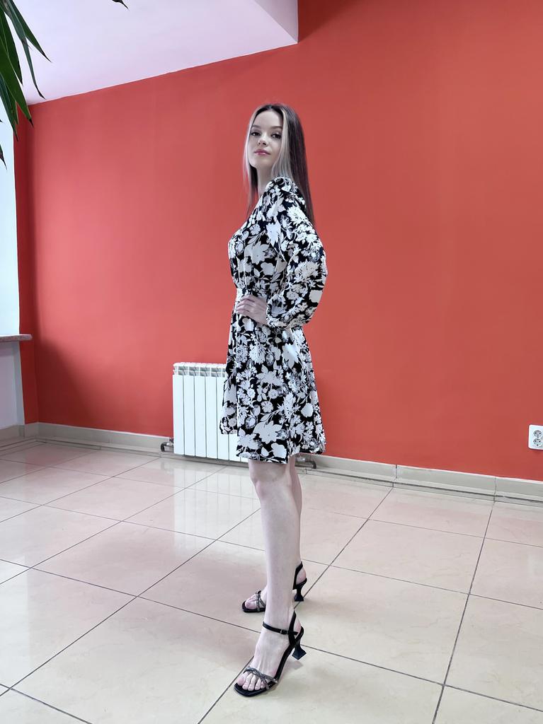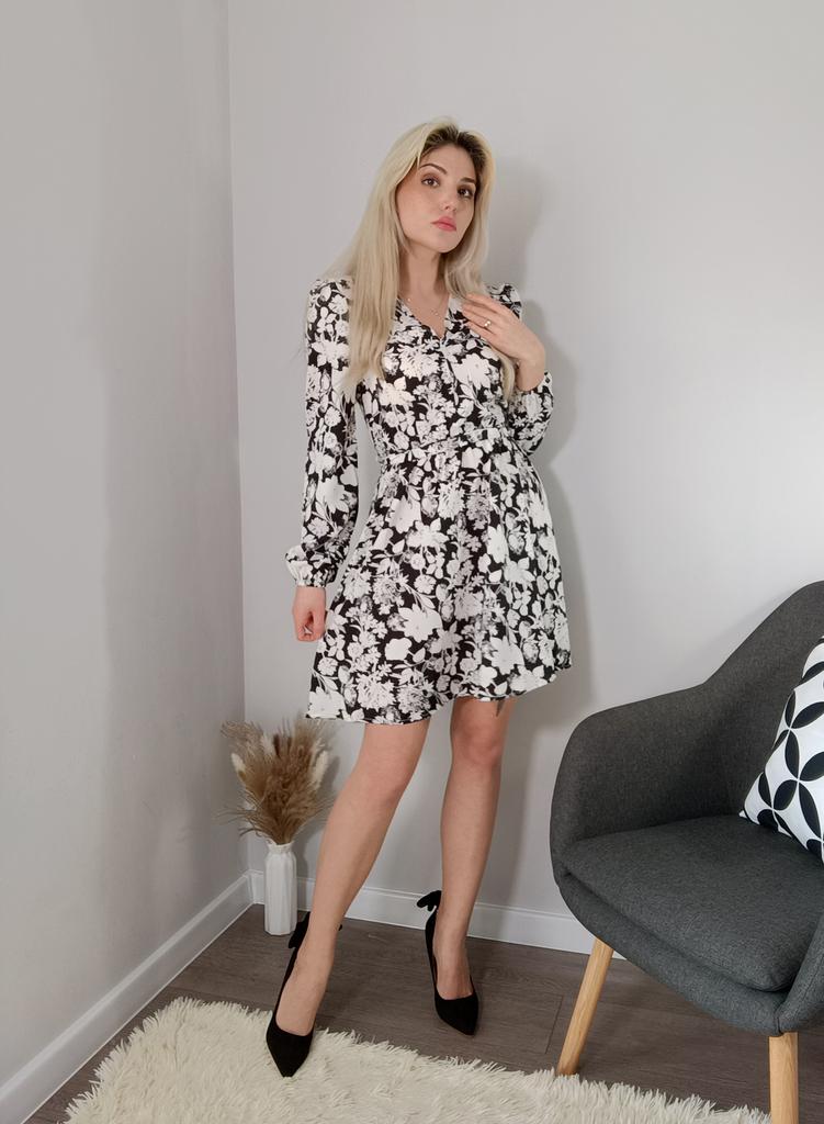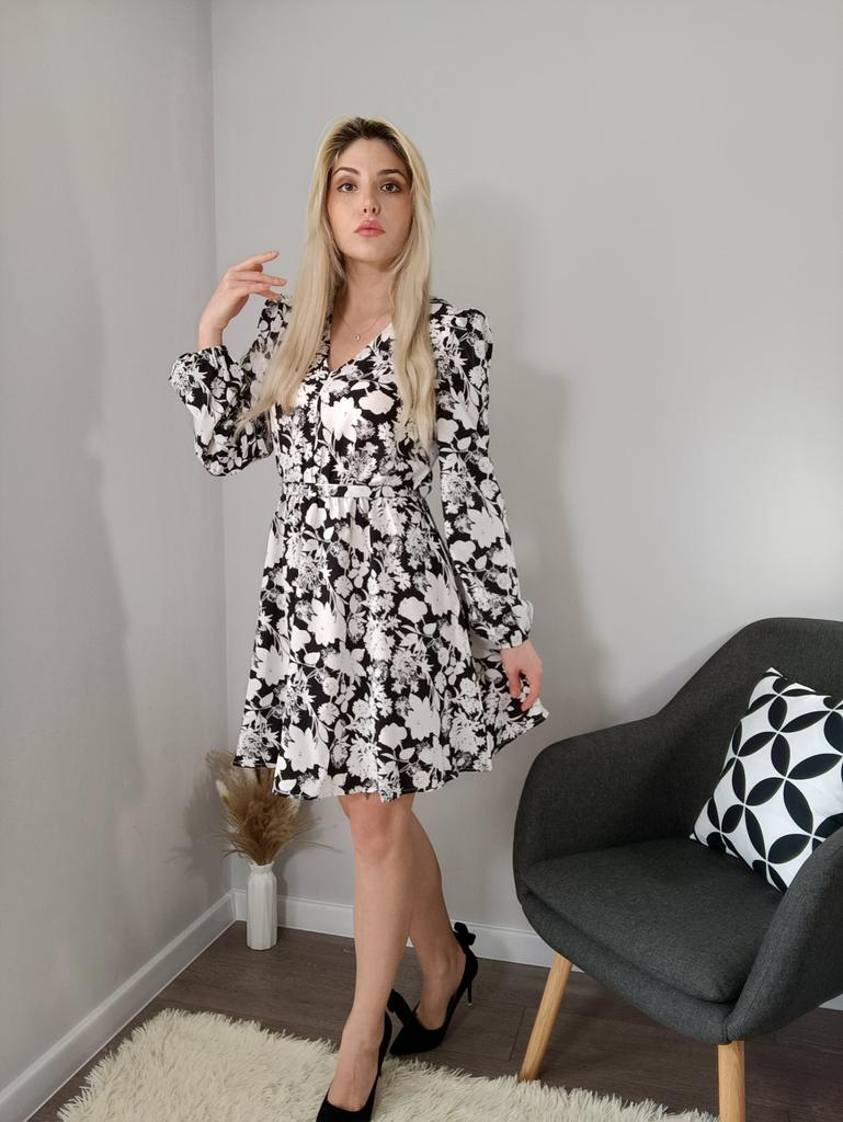 👗Потрясающее платьеце😍👌 Цветочный чёрно белый принт Полиэстер 100%,но очень приятный а главное не прилипает к телу. На мои параметры 90-76-98,рост 154 в размере М село идеально 👗Ничего переделывать не надо. Пошив отличный Вырез в зоне декольте отличное,не пОшло Материал почти не мнётся да и не видно даже на фоне этих цветочков 👗Гладится легко Рукава длинные в меру,на резиночке,не давят На талии тоже резинка, тянется Есть поясок длинный на шлейках Можно завязать как спереди,так и сзади 👗Платье хоть куда И для вечерних прогулок тоже отличный вариант Однозначно рекомендую 👐 Спасибо продавцу и Джум 🤗