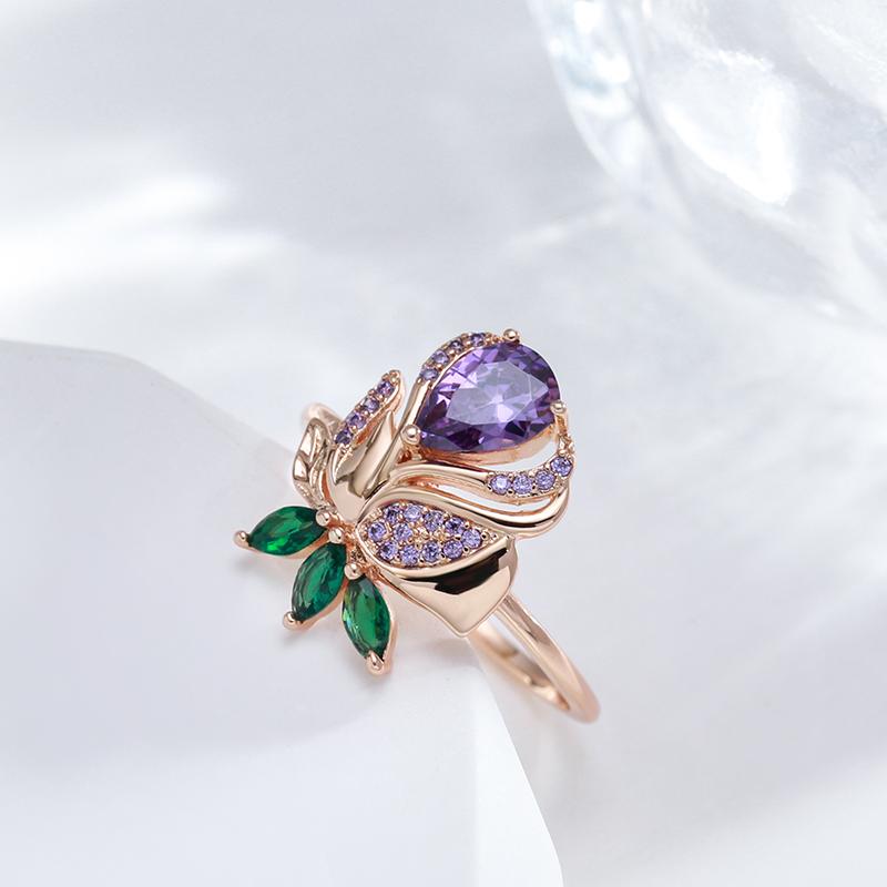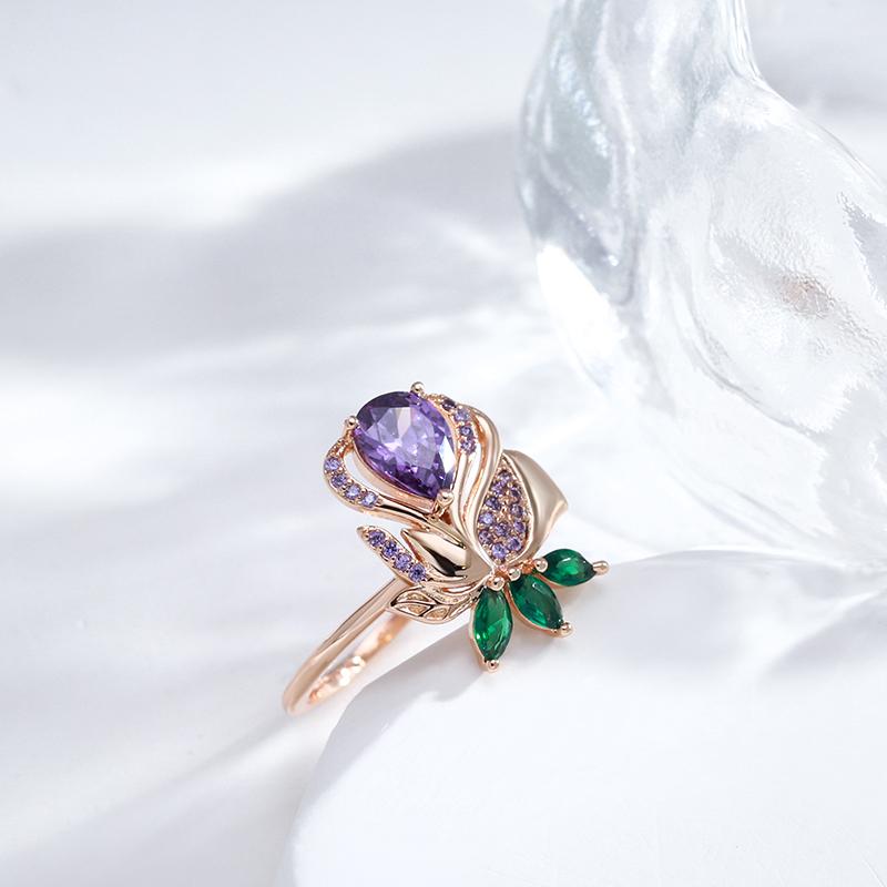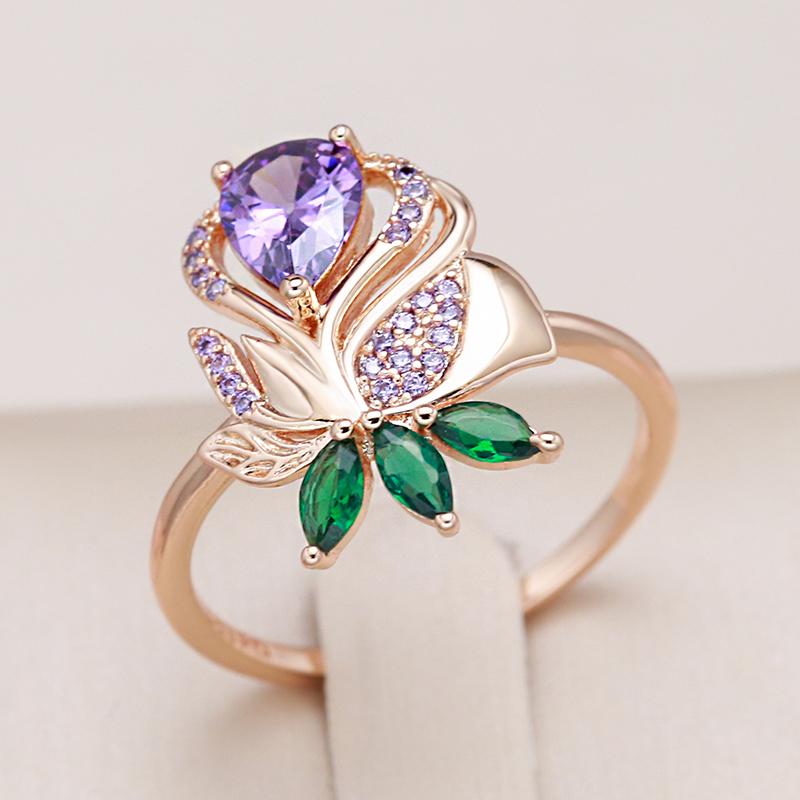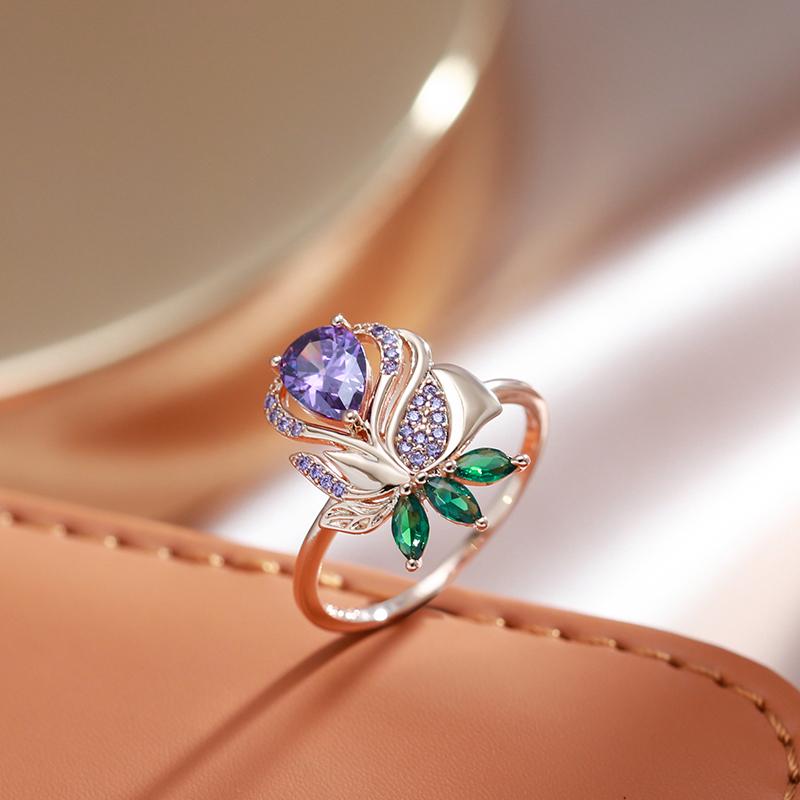 Роскошные цветочные кольца с геометрическим фиолетовым цирконом для женщин, винтажные свадебные украшения золотого цвета