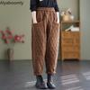 Большие размеры, корейские осенне-зимние женские толстые теплые брюки с высокой талией, коричневые, зеленые, черные свободные брюки, шаровары с карманами на эластичной талии