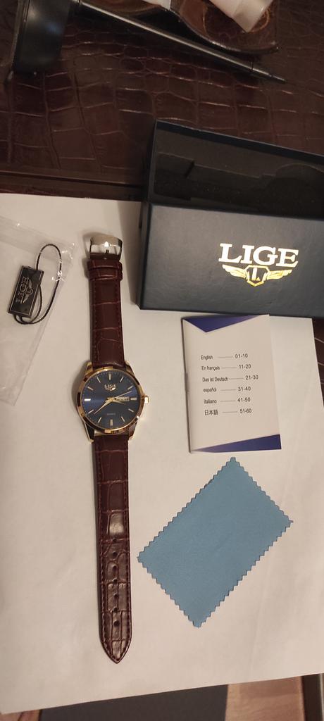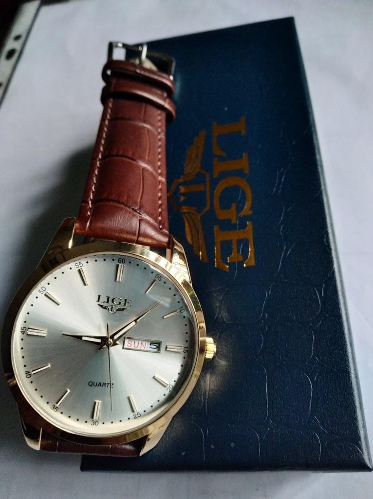 Наручные часы LIGE Мужские стильные наручные часы от фирмы LIGE (model 2) с кожаным ремешком. Часы кварц. На циферблате показывается дата и день недели, привычных нам цифр нет и это делает их более стильным. Каждая палочка и стрелочка на циферблате покрыта люминесцентным пигментом, который накапливает солнечный свет и светиться ночью. (Держит долго) Корпус выполнен из нержавеющей стали, а так же данные часы водонепроницаемые и в них можно погружаться на глубину до 30м. В комплекте идёт: - коробка - гарантийный талон - каталог - тряпочка Товар хороший продавца рекомендую