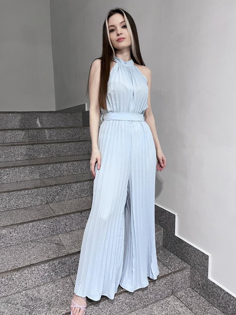 Нежно-голубой комбинезон плиссирован по всему периметру От любимого бренда Hi Dawn ❤️❤️❤️ Размеры от S до XL Цвета есть Материал Полиэстер +спандекс Даже в светлом оттенке не просвечивает Для жаркого лета эта вещь просто идеальна ,так как брюки свободного кроя ,клёш по длине к низу Оg 80-95 см В размере S Оставлю здесь свои замеры возможно кому-то пригодится 🟥 🚩Мои параметры 🚩Рост 164см 🚩Вес 48,5 🚩Ог 86 🚩От 60 🚩Об 90 🟥 Спасибо большое магазину ❤️ И Джуму за весьма скорую доставку ❤️ Спасибо за подписку,лайки и комментарии ❤️ 🎁Удачных всем покупок и отличного настроения