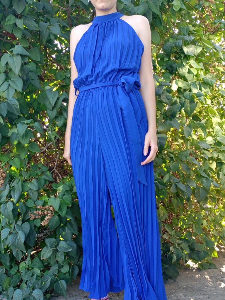 @anaisjoom - мой Телеграм-канал. Подписывайтесь, друзья, нужна ваша поддержка❤️ Чем больше нас, тем чаще розыгрыши и лучше контент. Этим летом я 100% буду носить комбинезоны. На этот раз я решила пополнить свою коллекцию плиссированной моделью в голубом цвете. Когда надела (кстати, моя реакция есть в распаковке в моем Телеграм-канале), очень сильно засомневалась, но потом влюбилась в него🥰 🔸У продавца представлены размеры: S-2XL. На мне М. Точные замеры: ОГ - до 120 см ОТ - 68-104 см ОБ - 120 см Длина - 135 см 🔸Мои параметры: ОГ - 84 см ОТ - 64 см ОБ - 90 см Длина рукава - 45 см Ширина плеч - 37 см Рост 165 см 🔸Материал достаточно комфортный, в комбинезоне ощущается прохлада. Я думаю, что для лета он отлично подойдёт. Ткань плиссированная. Отпаривается легко. 🔸Брюки широкие и это добавляет комфорта. Есть пояс. Плечи открытые. Сзади застёгивается на две пуговки. 🔸Смотрится костюм интересно и необычно. Для тех, кто любит подобные вещи, он отлично подойдёт. Рекомендую 👍 Ставлю ⭐⭐⭐⭐⭐ Большое спасибо продавцу ❤️ и Joom ❤️
