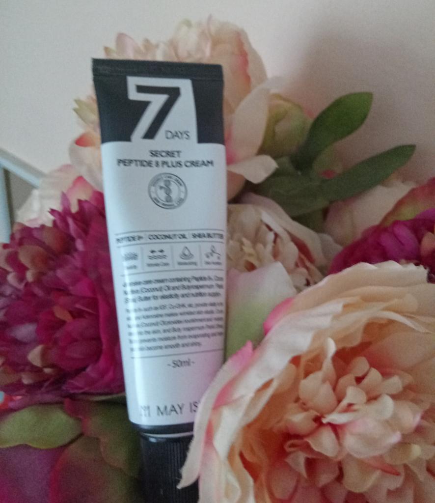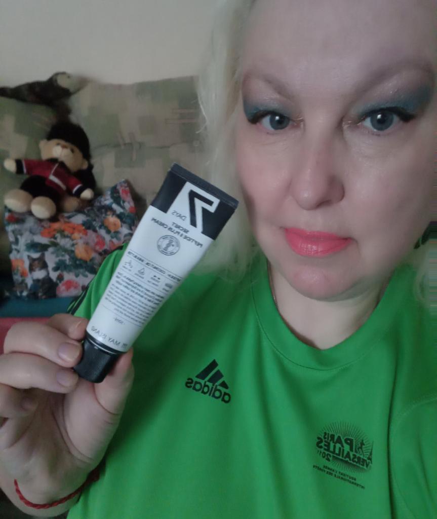 MayIsland Крем 7Days Secret Peptide 8 Plus Cream Получила кремушек, 50 мл, тюбик, в коробочке, сроки годности указаны. Расскажу немного о креме: Крем для лица с пептидным комплексом обладает выраженным омолаживающим эффектом, увлажняет, заметно повышает эластичность, разглаживает морщины, напитывает и выравнивает цвет лица. Крем обладает лёгкой, нежирной текстурой, быстро впитывается и подойдёт даже для жаркого периода и жирного типа кожи. Комплекс пептидов поддерживает на высоком уровне активность клеточных систем. Разглаживает морщины, способствует укреплению контуров лица, повышению общего тонуса кожи, укреплению коллагеновых волокон. Ниацинамид возвращает коже сияние и улучшает общий цвет, выравнивает тон, устраняя красноту и тусклость. Контролирует выработку меланина и предупреждает появление пигментации. Способствует стимуляции синтеза коллагена и улучшению защитных функций кожи, помогает снизить потерю влаги из кожи и снизить пигментацию, смягчает, повышает эластичность кожи, увлажняет, сужает поры, успокаивает, осветляет. Аллантоин восстанавливает и омолаживает кожу, заживляет поврежденные участки, придает упругость. Способ применения: Утром и вечером наносите немного кремчика на последнем уходовом этапе. К покупке оч советую! Кремушек супер, и объем не маленький! Спасибо продавцу и Джум за отличный товар ♥️♥️♥️