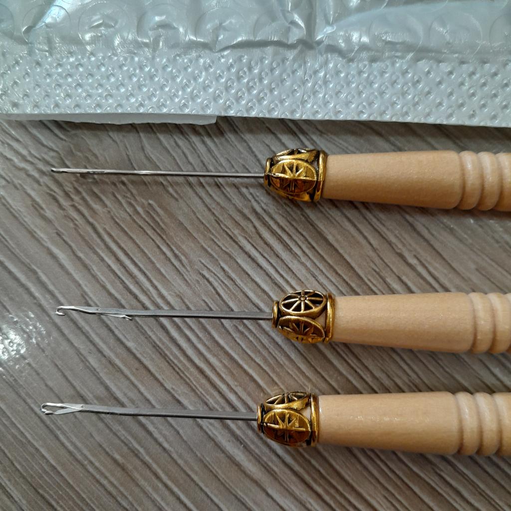 Крючки получила через месяц, на вид прочные, не знаю как в работе, но не угадала с размером, мне нужны были совсем тонкие, такие, как с деревянной ручкой, жаль, что его заказала всего один, а четыре комплекта теперь будут ждать, своей востребованности, может быть для чего-нибудь и когда-нибудь пригодятся, но всё равно спасибо продавцу за честность и за товар.