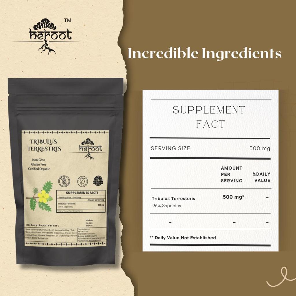 Порошок Heroot Tribulus Terrestris приготовлен из Tribulus terrestris (обычно известный как Гокшура) и предлагается в виде порошка мелкого помола. Tribulus terrestris — это традиционный растительный ингредиент, обычно входящий в состав травяных и аюрведических препаратов, и здесь он представлен для регулярного диетического использования.