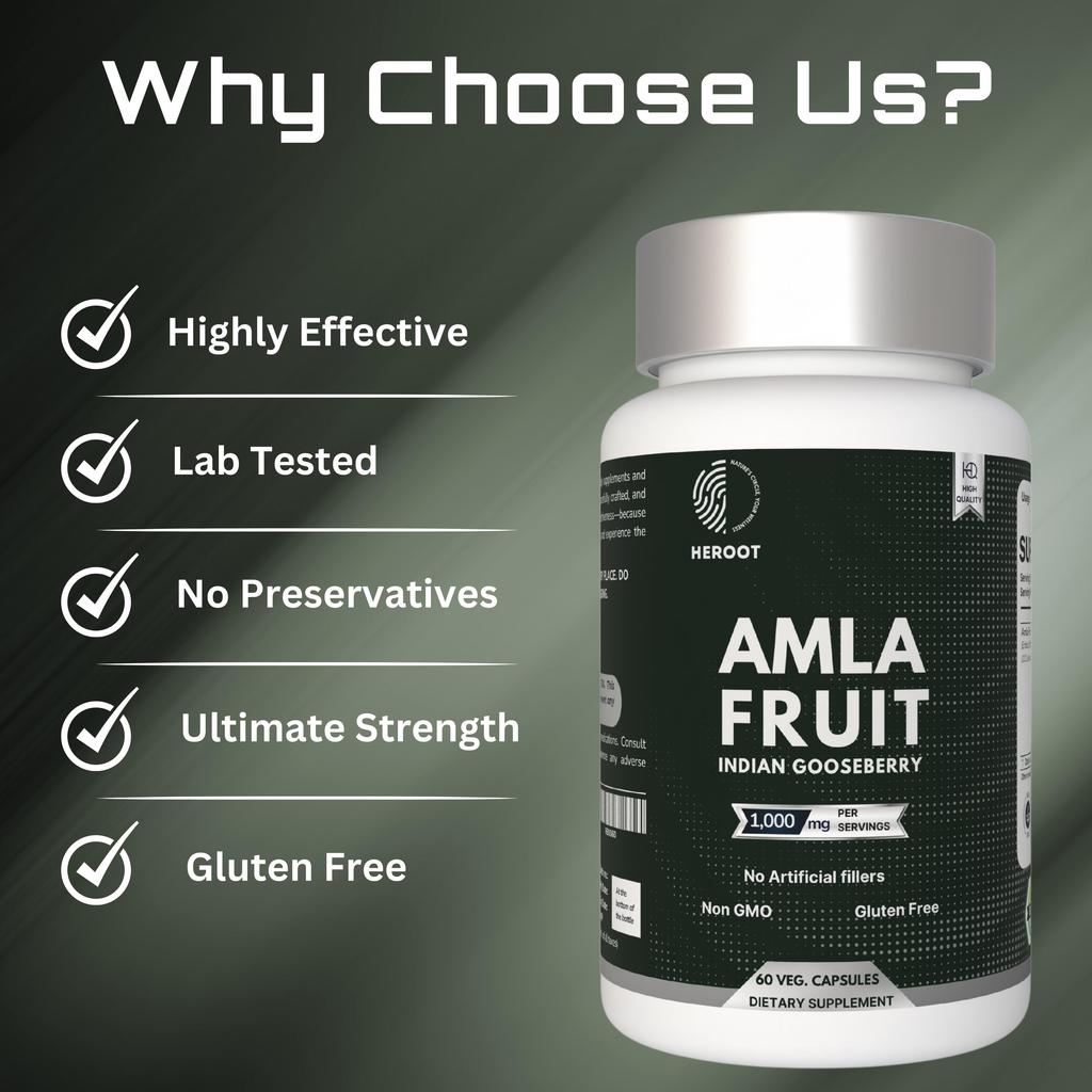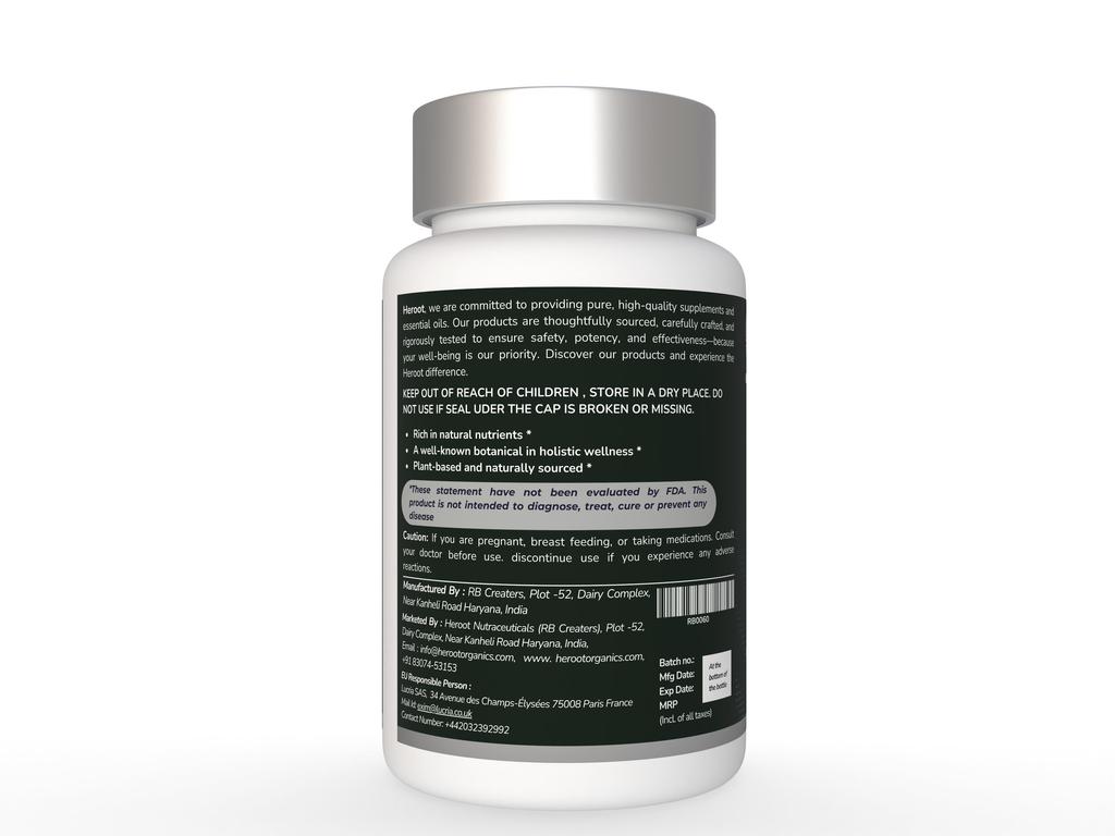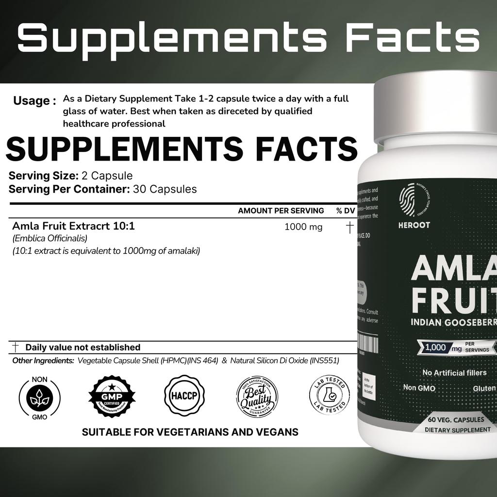 Капсулы Heroot Amla 1000 мг разработаны с использованием амлы (Филлантус эмблика), также известный как индийский крыжовник, в удобном формате капсул. Амла — традиционный растительный ингредиент, обычно включаемый в диетические и травяные препараты, и представленный здесь для регулярного диетического применения.