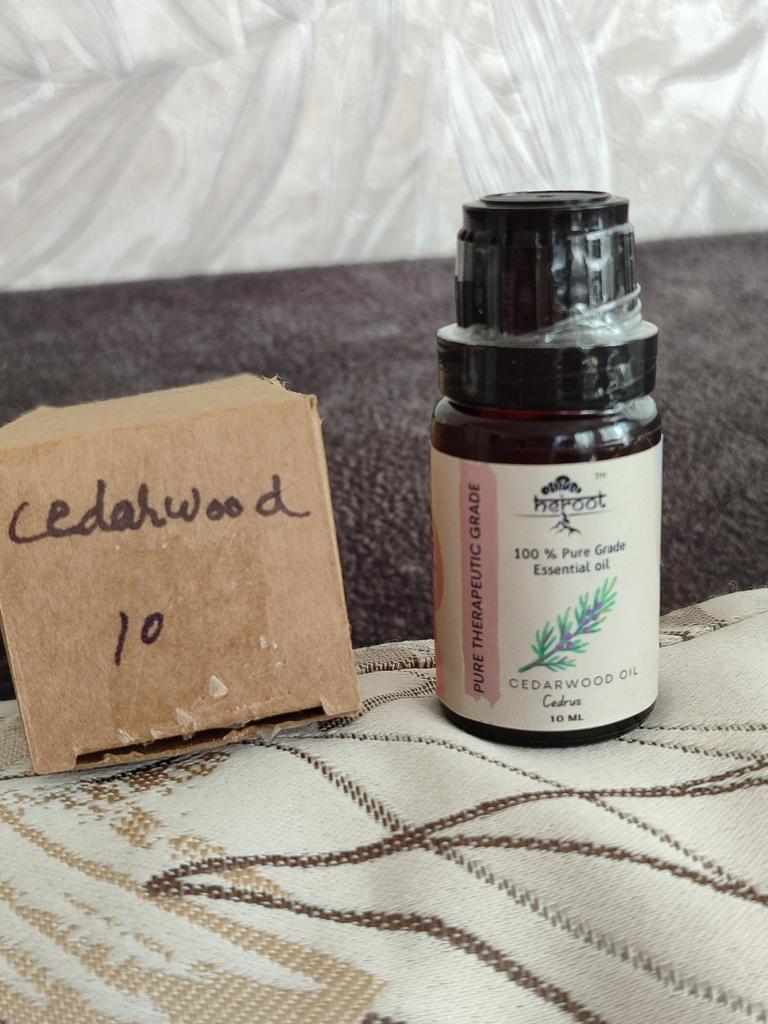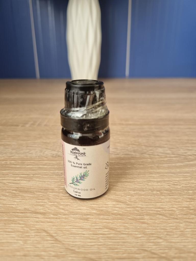 Эфирное масло кедра Heroot из Индии. Масло в стеклянном пузырьке с дозатором, надёжно упакованном в коробочку и пупырку. Объём 10 мл. Срок годности я не нашла. Heroot предлагает широкий ассортимент натуральных смесей эфирных масел из Индии, я заказала сразу 2 разных флакона. Масло подойдёт для ароматерапии, медитации, я заказала для аромалампы. Также, масло можно использовать для наружного применения, например, для массажа (добавлять несколько капель в массажное масло), для ванн и сауны. 100% натуральное терапевтическое эфирное кедровое масло. Мне аромат понравился, пользуюсь маслом регулярно и очень довольна, аромат кедра дарит некоторое спокойствие и умиротворение, и для массажа отлично. Я приобретением довольна, к покупке могу рекомендовать!