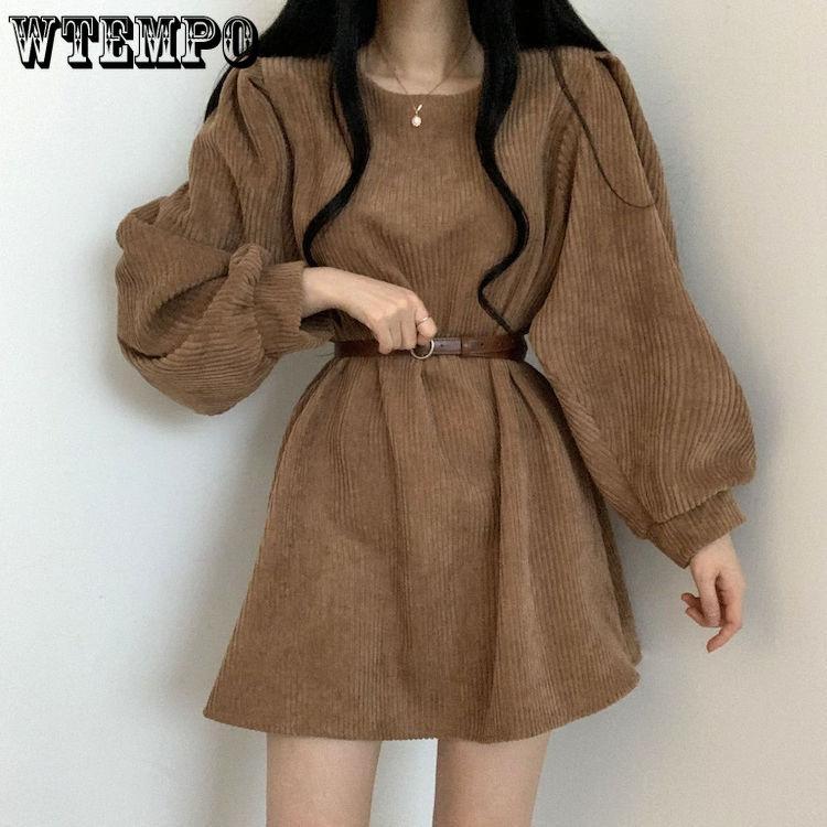 Женский темперамент, чистое желание, ветер, сплошной цвет, рукав-фонарь, трапециевидное платье, ретро-дизайн, ниша, вельветовые платья с длинным рукавом и поясом — купить товар онлайн с бесплатной доставкой до всему миру!