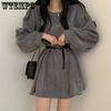 Женский темперамент, чистое желание, ветер, сплошной цвет, рукав-фонарь, трапециевидное платье, ретро-дизайн, ниша, вельветовые платья с длинным рукавом и поясом