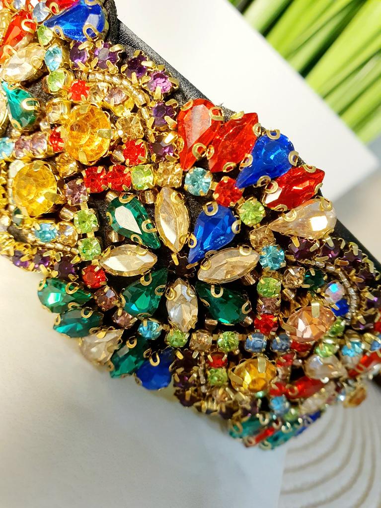 Повязка для волос в стиле барокко, ретро, индивидуальный обруч для волос, вышитый вручную из цветного стекла с цветком, тяжелая работа — купить товар онлайн с бесплатной доставкой по всему миру!