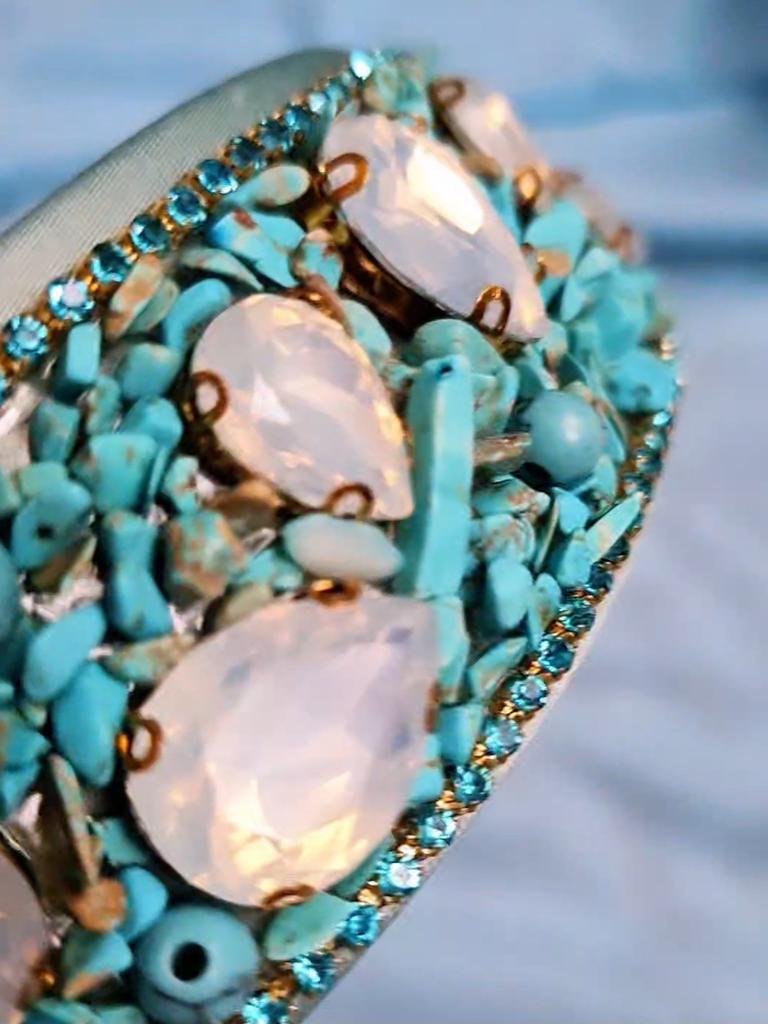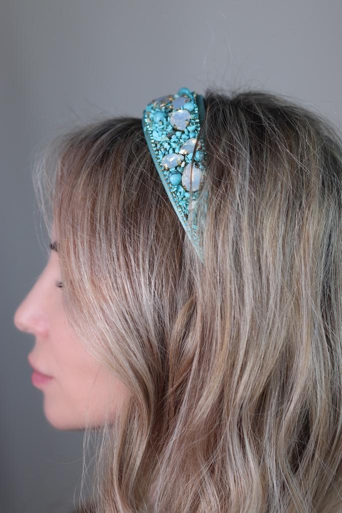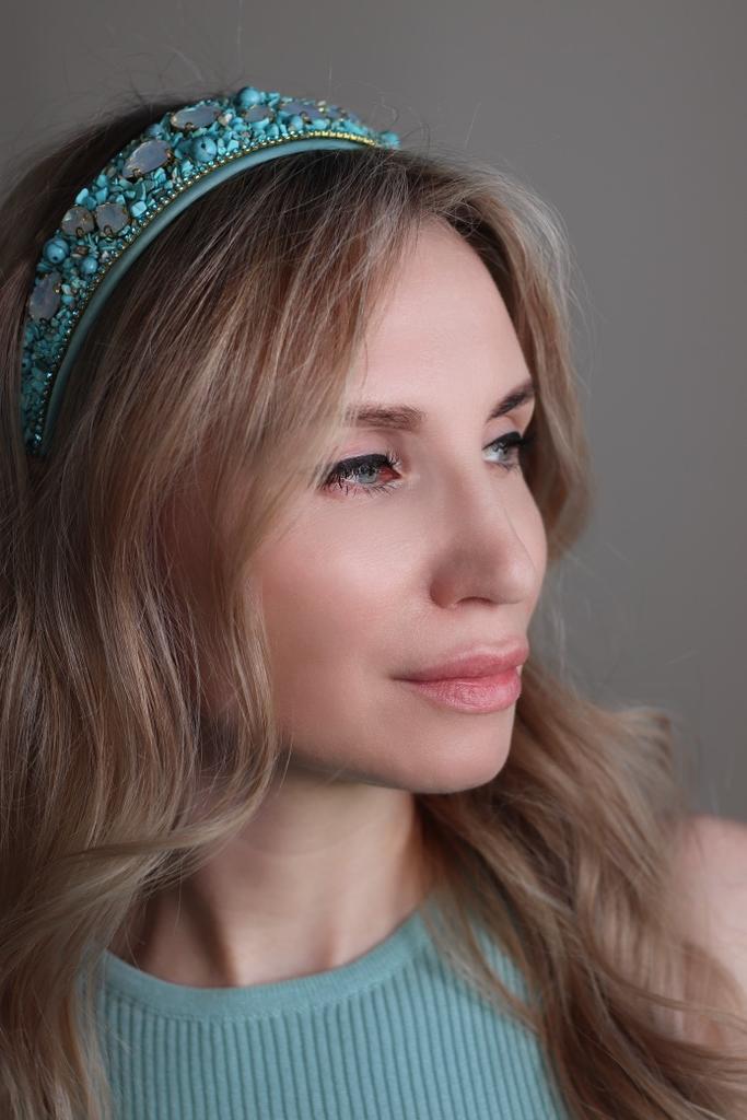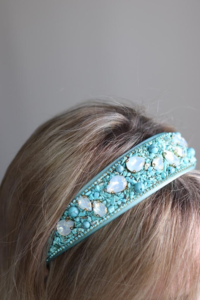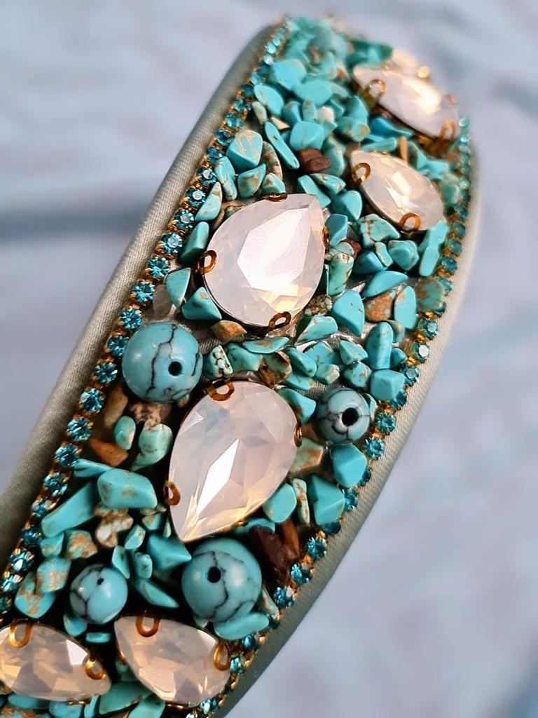 Обруч для волос в бирюзе 🔖 Все ссылки на вещи из обзора, в моём телеграмм канале, со свежими промокодами, выгодными находками и специальными предложениями для Вас. ⬇️⬇️⬇️⬇️ KatyaKomi ⬆️⬆️⬆️⬆️ Присоединяйтесь, если ещё не со мной, каждому рада ♥️♥️♥️ Ободок усыпан мелкой крошкой из пластика, бирюзового цвета и каплями похожими на лунный камень. Держатся детали хорошо ⭐️⭐️⭐️⭐️⭐️ Очень красивый, рекомендую 👌🏻✨✨✨