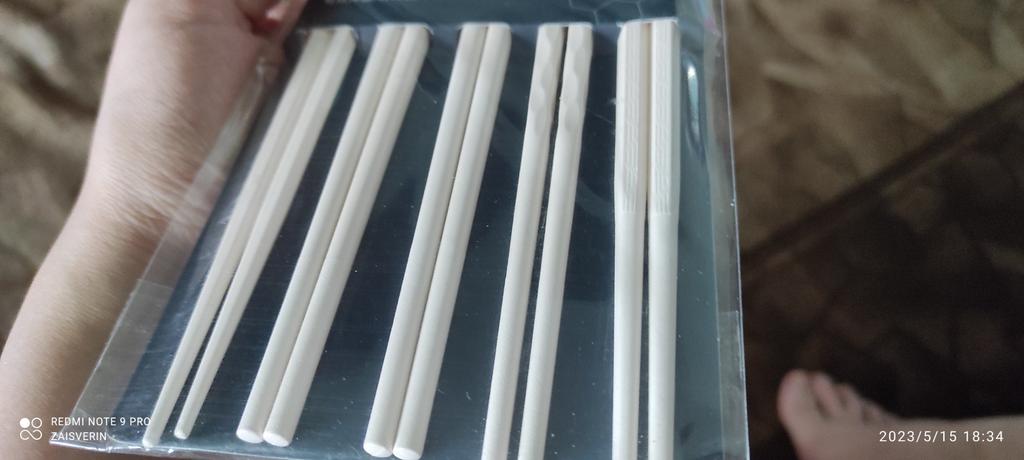 Заказ шёл почти 3 месяца. Выиграла за 1р. Самое интересное, что в тот период думала купить набор палочек и тут раз и выиграла. Очень приятное совпадение. Упакованы были прекрасно, плотненько завëрнуты в мягкий пластик и пакет. В дороге ничего не повредились, спасибо продавцу за это. Красивые, рифлëнные по разному. 5 пар, все разные. В руках не скользят. В меру тяжëленькие, чувствуются в руках. Я довольна😁
