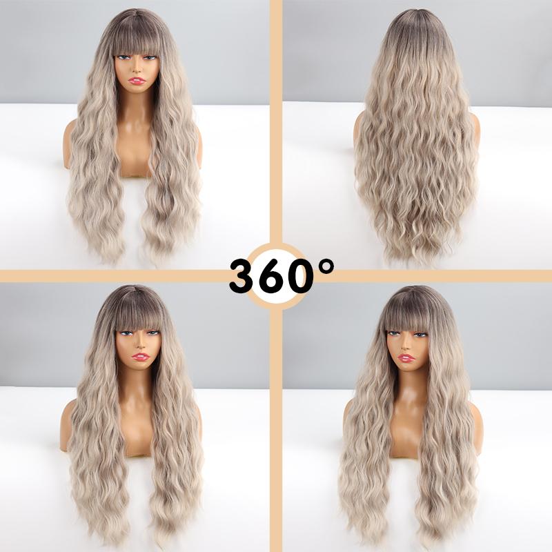 MISSQUEEN женский парик Ombre коричневый, серый цвет длинный волнистый парик с челкой из синтетического волокна женская повседневная одежда косплей волнистый парик