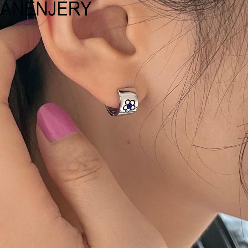 ANENJERY Серьги-кольца с цветами для женщин, креативный уникальный дизайн, серебряные украшения Huggies для вечеринок