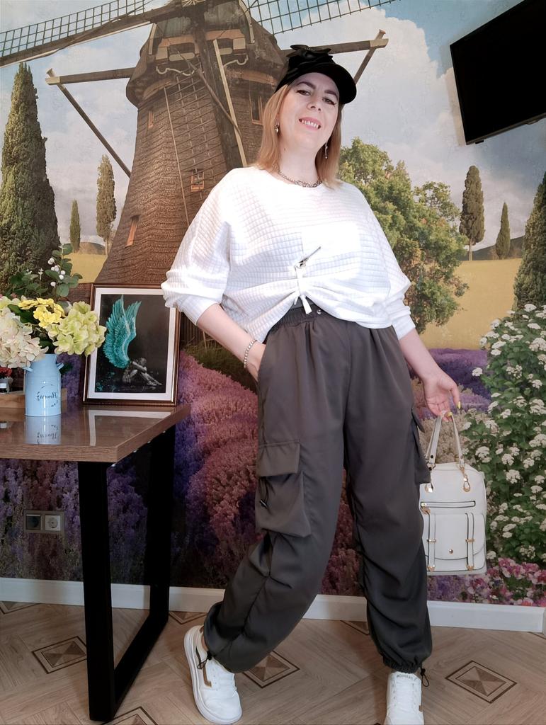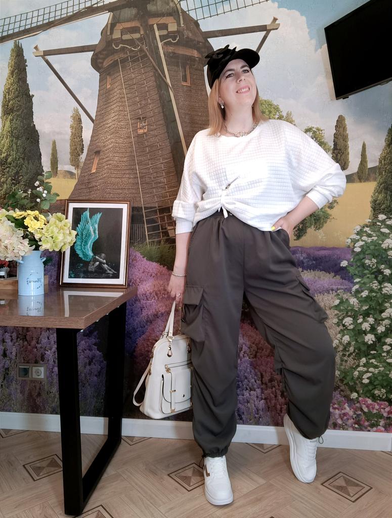 КРУТЬ 🔥 БРЮКИ -КАРГО! Привет👋 Карго вернулись в тренды! А, значит, мне надо! Ох,какие они крутые! Чесно, не ожидала. Синтетика и синтетика, что в них такого? Влюбилась, когда получила. Как сидят! А сколько свободы движений! Вобщем, девочки, это моя новая любофф. Буду носить до дыр. Пришли в пакете с зип-замком. Запаха нет. Материал: полиэстер. Очень приятный к телу, не скрипучий. Тянется немного. Штаны не электризуются, но я их отпарила, если отгладить утюгом - не знаю. Они тонкие, широкие и не жаркие, соответственно. На талии широкая резинка, удобная, не давит. Снизу тоже резинка, свободная. По бокам глубокие карманы,как у джинс. Есть ещё боковые нашивные с кулисками карманы, тоже глубокие. На талии, на карманах и снизу есть шнурки-утяжки, регулируют все как вам нужно и смотрятся интересно. Посадка высокая. Пошив хороший. Все швы оверложены. В этом сезоне можно сочетать не сочетаемое, так что эти брюки хоть с каблуком носите! Миллион сочетаний, все зависит от вашей смелости. Мне б в 90-вые такие, я б из них не вылезала 😁👍 И посмотрите ещё, какая отличная тут длина. Кстати, подойдут и на высоких, и на низких. Они присборены ниже колена, такой пошив, ещё и выше можно поднять и утянуть, либо будут сильнее складки на рост 150, например. Эти штаны красиво будут смотреться в любом случае. Мой рост 173см. ОТ 85см. ОБ 107см. Размер одежды 48 -50. Выбрала максимальный размер. Сели отлично!!! Замеры в размере 3XL: ✏️длина 105см ✏️длина по внутреннему шву 68см ✏️ОТ 64 - 94см ✏️ОБ 138см ✏️низ брючины в обхвате 32см ✏️обхват брючины выше колена 70см На выбор три расцветки. Размеры: S - 3XL. Просто крутые штанцы😎 Рекомендую ✅ 🔥 🔥 🔥 Всем отличных покупок 👋 #elena_likui #брюки_карго #женский_гардероб