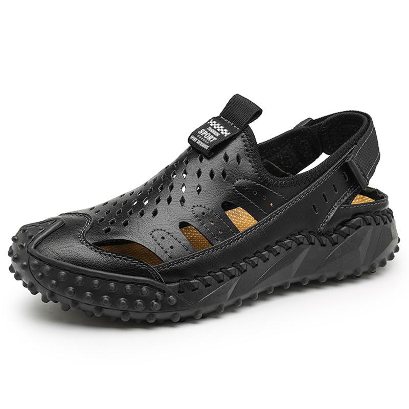 Мужские повседневные дышащие мягкие сандалии из натуральной кожи с ручной строчкой — купить товар онлайн с бесплатной доставкой по всему миру!