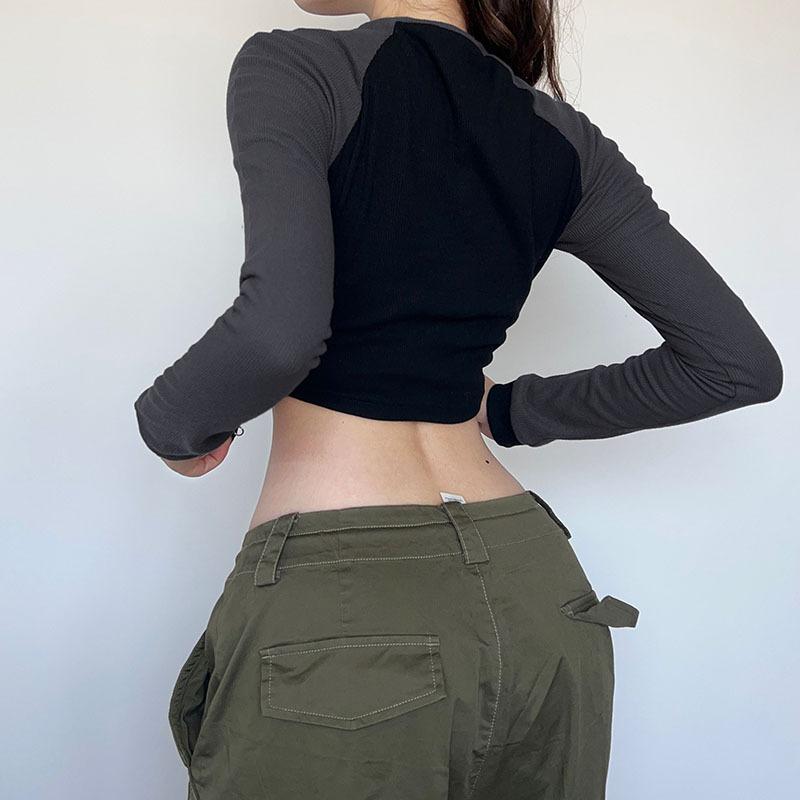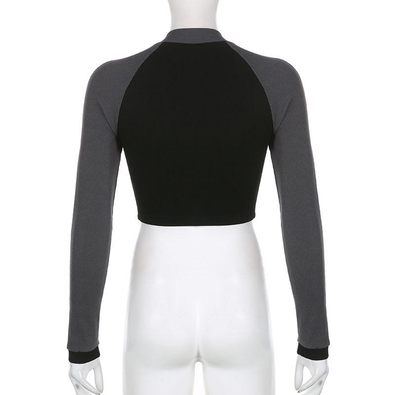 Топы, осенняя укороченная футболка, женская одежда, в стиле панк, сшитая, укороченная, на молнии, узкая, с длинным рукавом, женская уличная одежда, повседневная приталенная одежда