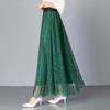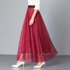 Женская весенняя элегантная кружевная эластичная полуюбка с высокой талией, темпераментная универсальная однотонная длинная юбка трапециевидной формы с большим подолом