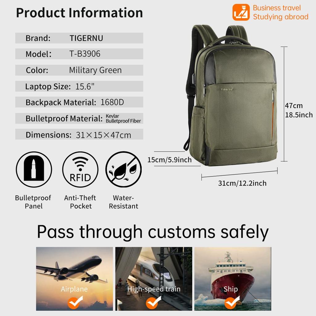 Tigernu Совершенно новый пуленепробиваемый рюкзак из материала уровня II, автономный баллистический панельный мужской дорожный рюкзак большой вместимости Mochilas