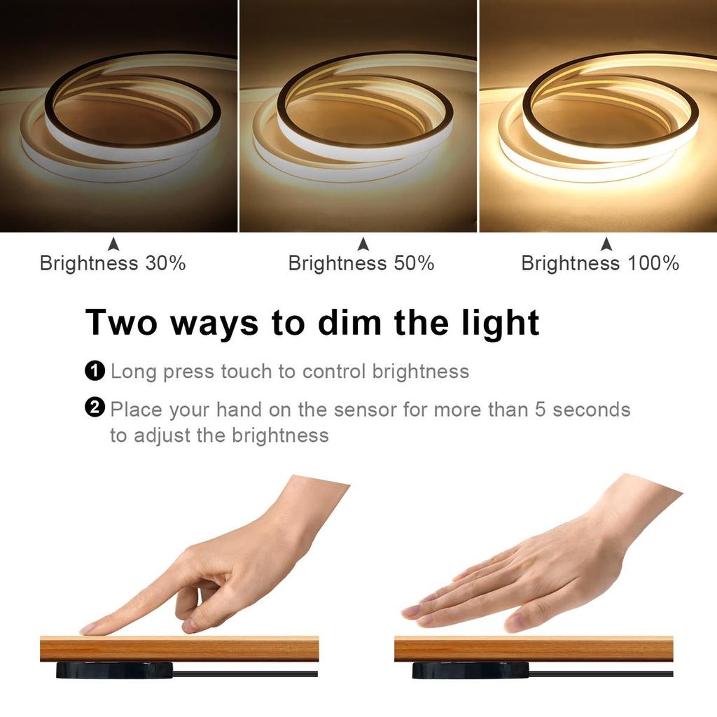 DC24V COB Светодиодная неоновая лента с регулируемой яркостью, проницаемое деревянное зеркало, акриловое беспроводное сенсорное выключатель, декор для комнаты, кухни, ночника
