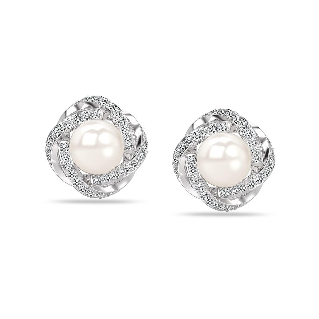LeCalla Серьги-гвоздики с узлом любви из стерлингового серебра 925 пробы с жемчугом CZ для женщин-подростков