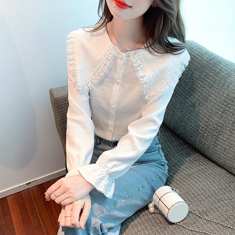 Весенний новый стиль, красивая женская белая повседневная рубашка с длинным рукавом, уникальная шикарная блузка с оборками — купить товар онлайн с бесплатной доставкой по всему миру!