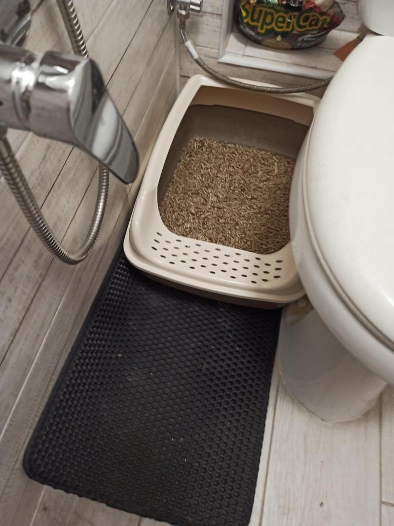 Коврик отменный. Заказываю второй уже побольше. Работает отлично как с древесным наполнителем так и с бентонитовым. Намного чище возле лотка. Все остатки наполнителя с лапок остаются на коврике и не несутся в комнаты. Раз в неделю вытряхнула. Стирается тоже неплохо из душа полила и поставила стекать, через 30мин уже снова постелила. Рекомендую.