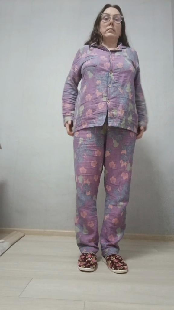 Спасибо большое за хороший товар и доставку.Пижама фабричная,сшита очень хорошо,по всем правилам,с кантом,ткань двухслойная,изнанка вообще изумительной расцветки. Размер в принципе соответствует меркам,но учитывая,что одежда для сна,нужно брать на размер больше. Поэтому я уже заказала еще одну на размер больше.Жду с нетерпением. Продавца рекомендую. Мира всем и добра.