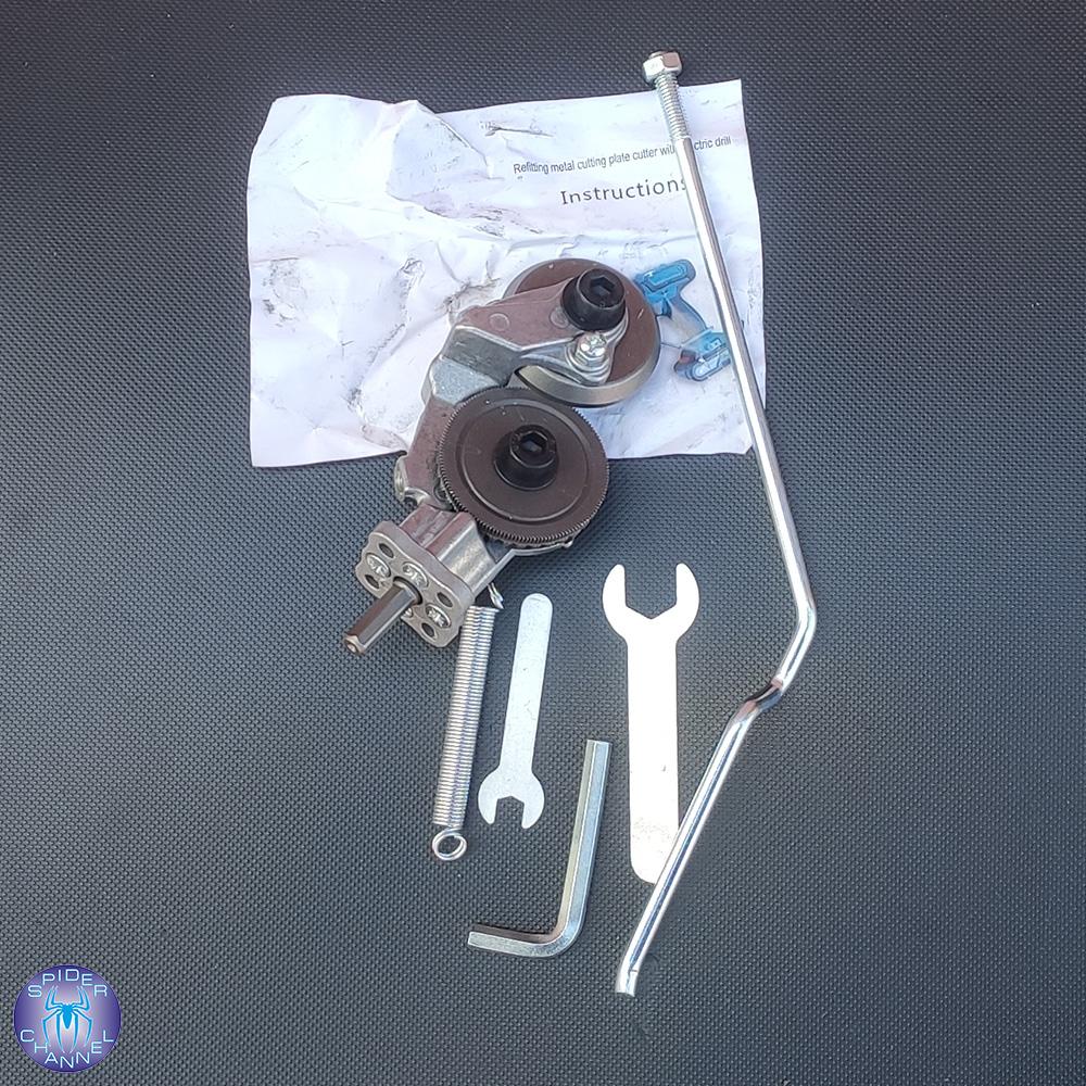 Устройство для резки металла на дрель или шуруповерт. Прибыло в частично разобранном виде. Собирать или испытывать ещё не пробовал. Прибыло без коробки в полиэтиленовом пакете, из которого торчат детали. Продавец не удосужился отправить и упоковать для удобства покупателя.