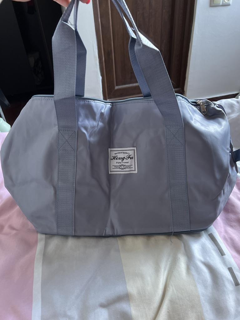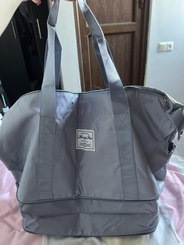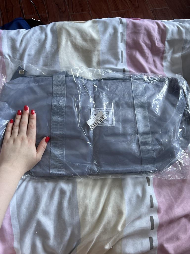 Доставка около месяца. Сумка средняя по величине. Сшита отлично, яркая. Хороша в дорогу, так как сзади есть нашивка, чтобы одеть на ручку чемодана на колесиках, что удобно. Внутри одно большое отделение, и снаружи по бокам кармашки для мелочей или бутылки с водой. На фитнесс ходить мне не подошла, так как ручки коротковаты, на плечо не одеть. В общем, продавца рекомендую.
