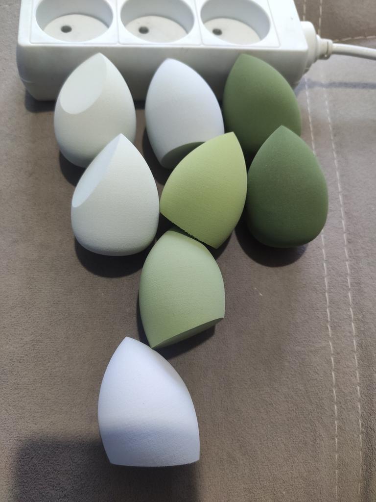 Отличные спонжики. Прям такие же по качеству, которые я брала в магазинах косметики, но только намного дешевле. Единственное, что их обязательно нужно промыть и посушить перед использованием, тогда и запах пропадёт. Как по мне, это самый лучший размер. Они и для влажного метода хороши и просто без намокания пользоваться удобно.