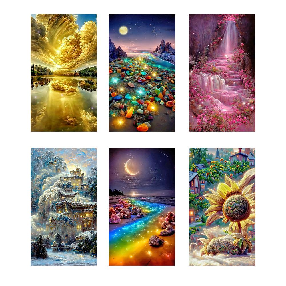 5D DIY Полный круглый дрель Алмазная картина Пейзаж Комплект Домашнее украшение Художественное ремесло