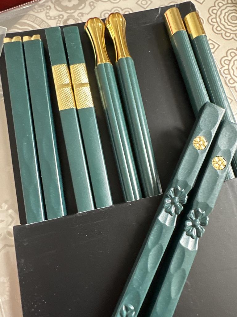 5 пар зеленого золота, японские китайские палочки для еды, еда, палочки для суши, многоразовый сплав, корейский набор палочек для еды, здоровая кухонная посуда