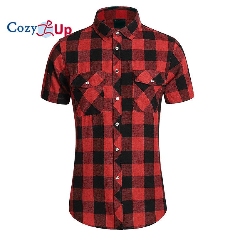 Cozy Up Мужские повседневные фланелевые клетчатые рубашки с коротким рукавом на пуговицах, рабочие рубашки