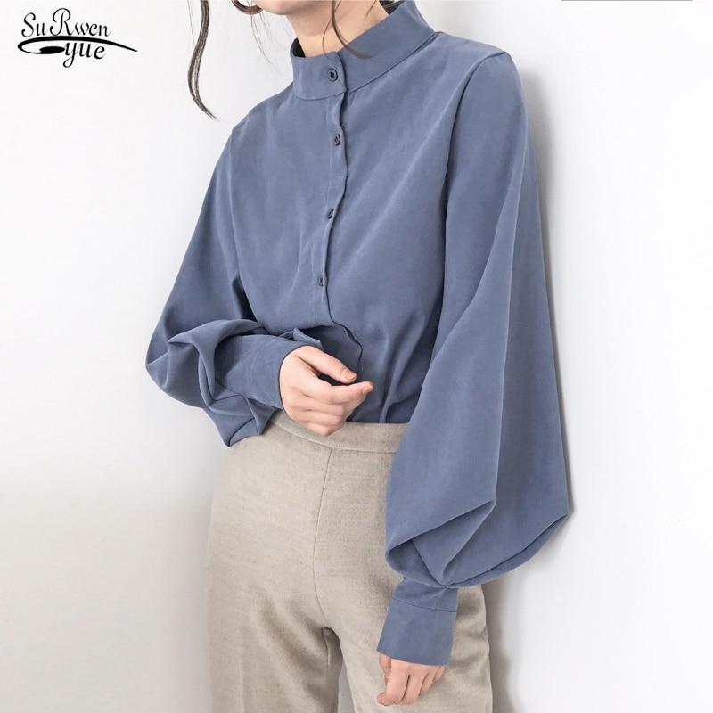 2023 модная женская блузка, рубашка-фонарь, женские рубашки с длинным рукавом, однотонные офисные женские топы с воротником-стойкой, одежда Blusas 6462
