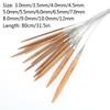 Круговые спицы для вязания крючком из коричневого бамбука и нержавеющей стали диаметром 3,0-12,0 мм