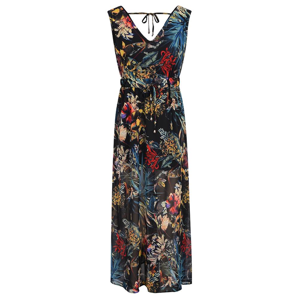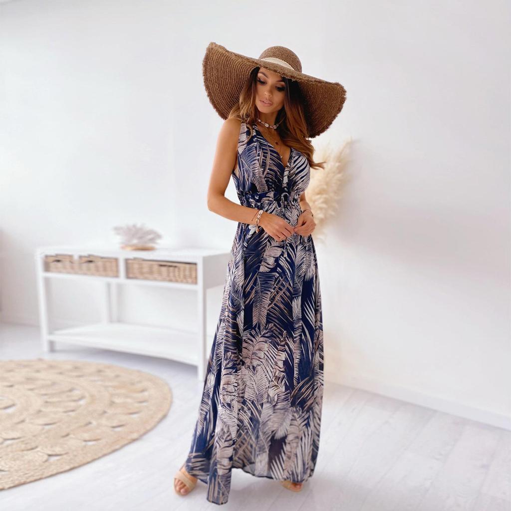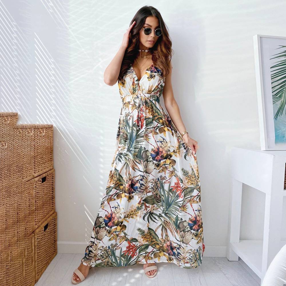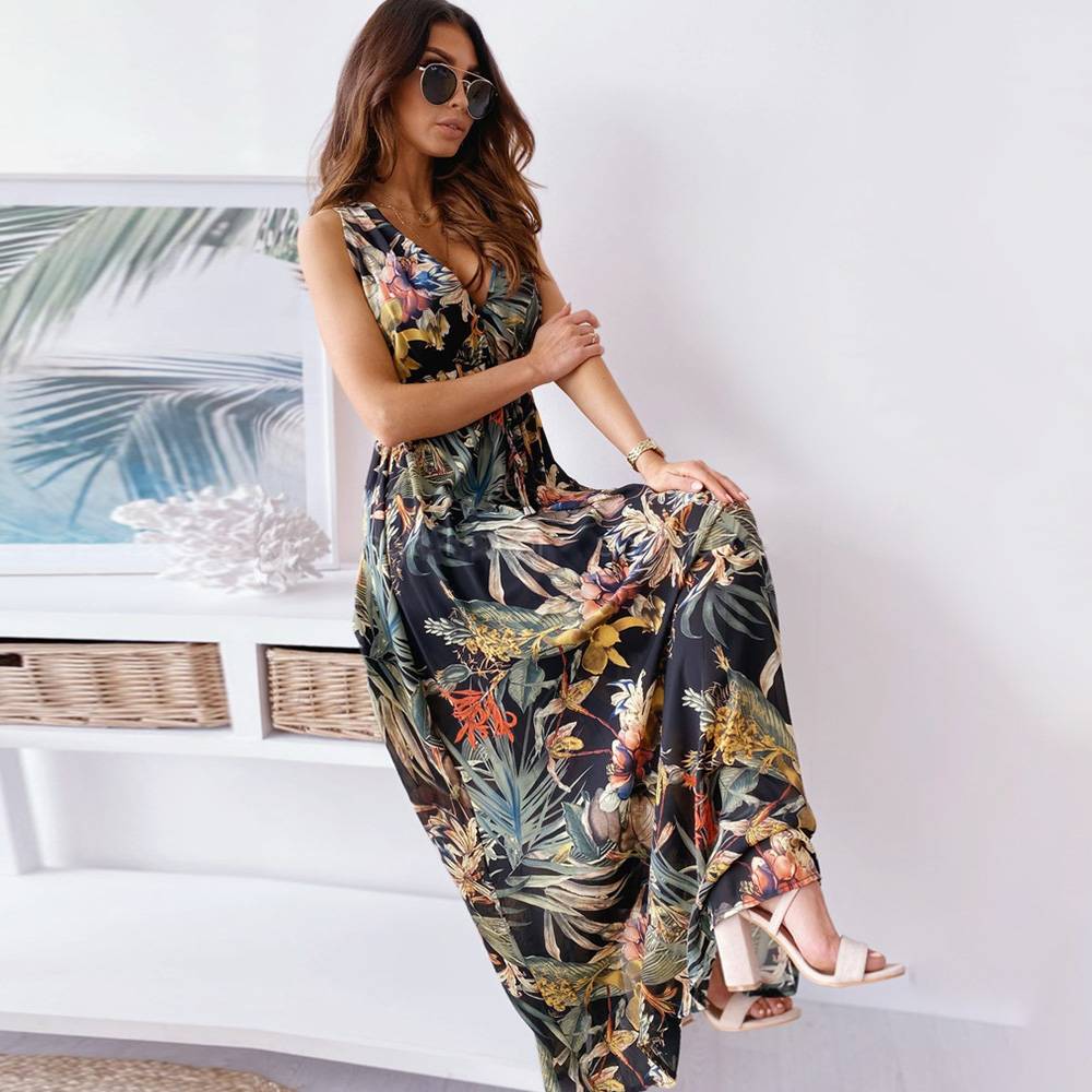 Женское летнее длинное платье макси с цветочным принтом в стиле бохо и V-образным вырезом, женский праздничный сарафан