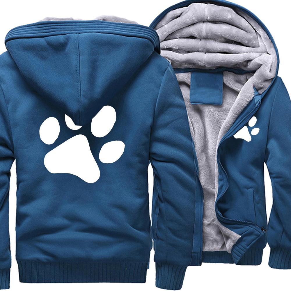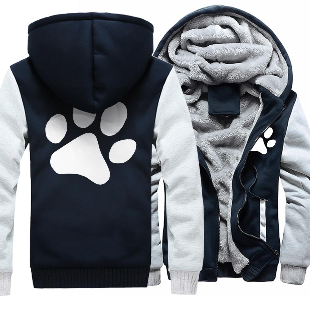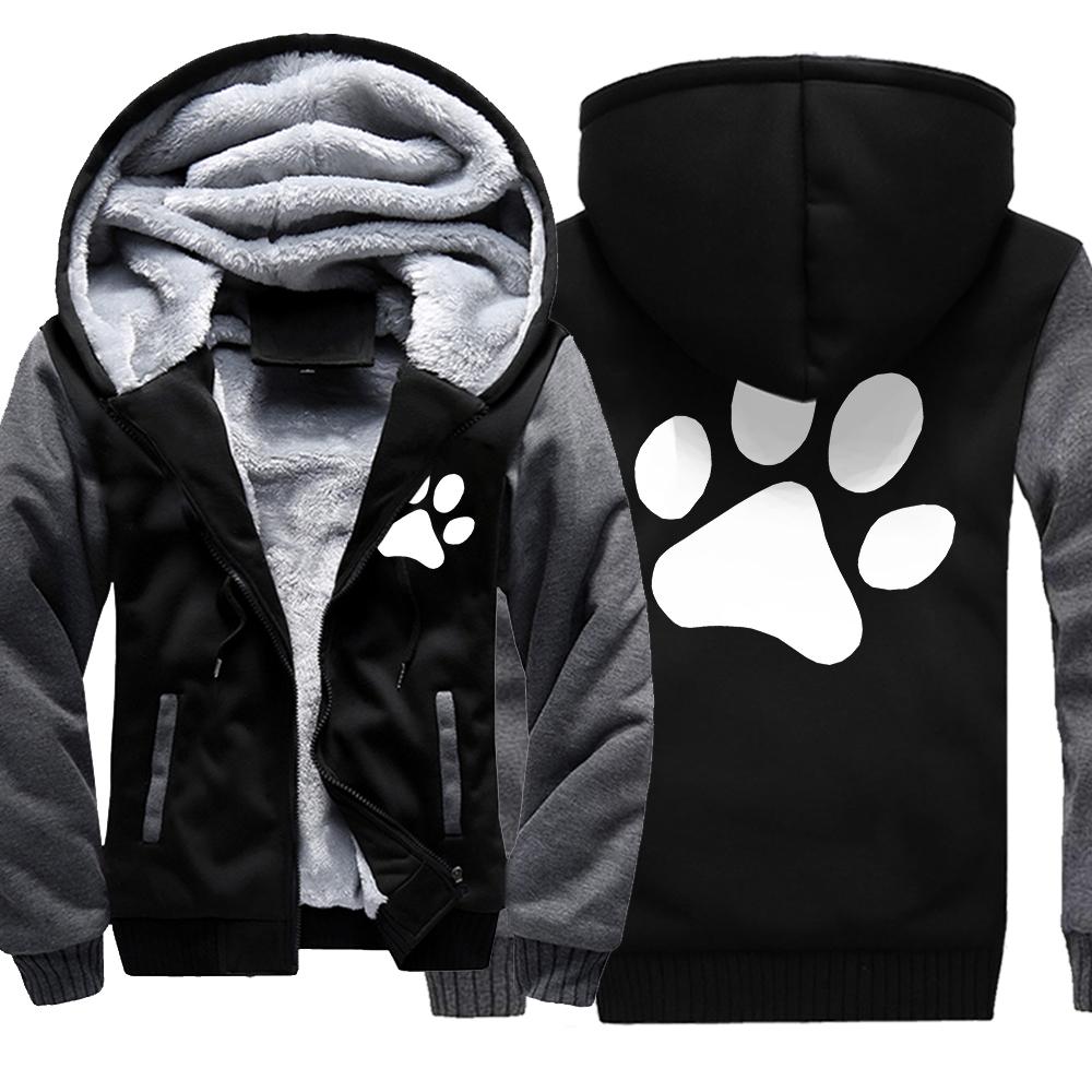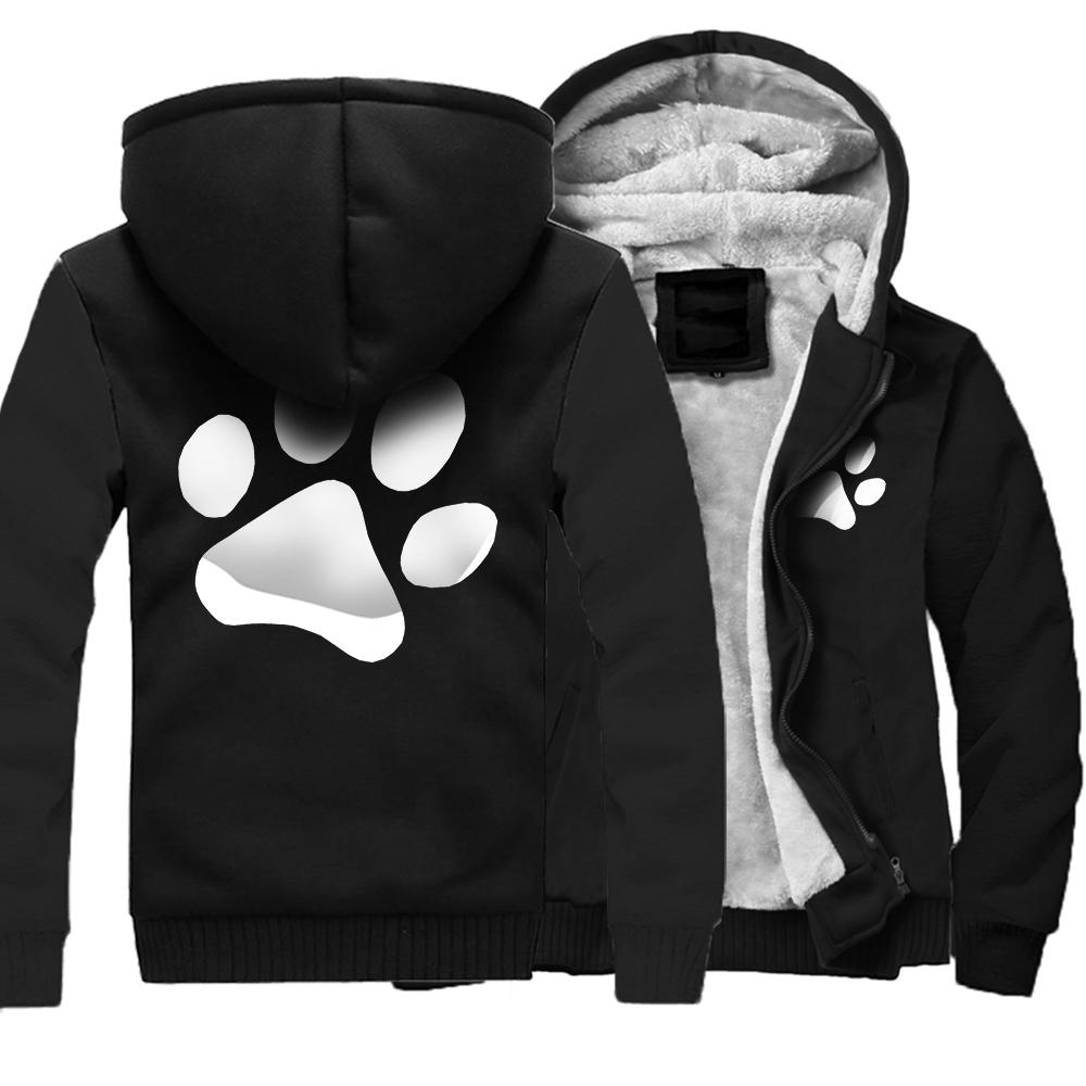 Kawaii мультфильм собака с принтом лапы толстовка мужская зимняя теплая утепленная толстовка повседневный спортивный костюм в стиле хип-хоп куртка на молнии ветрозащитное пальто